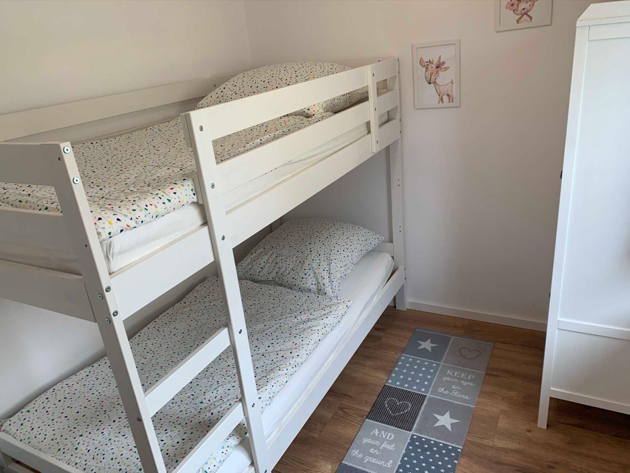 • Doppelstockbett. Die Betten sind bei Anreise bezogen.