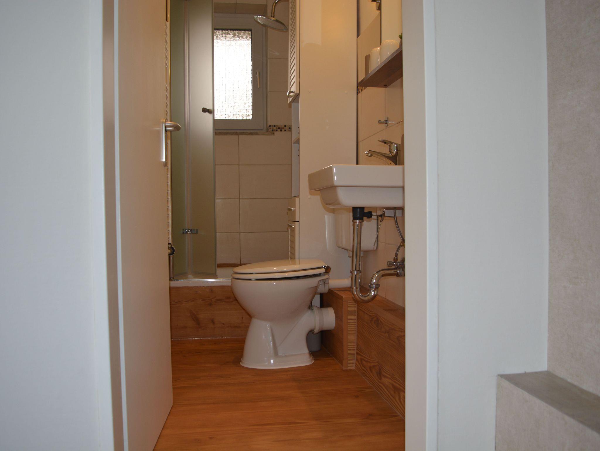 einem Fenster, Dusche, Föhn, WC, Handwaschbecken, Spiegel, 2