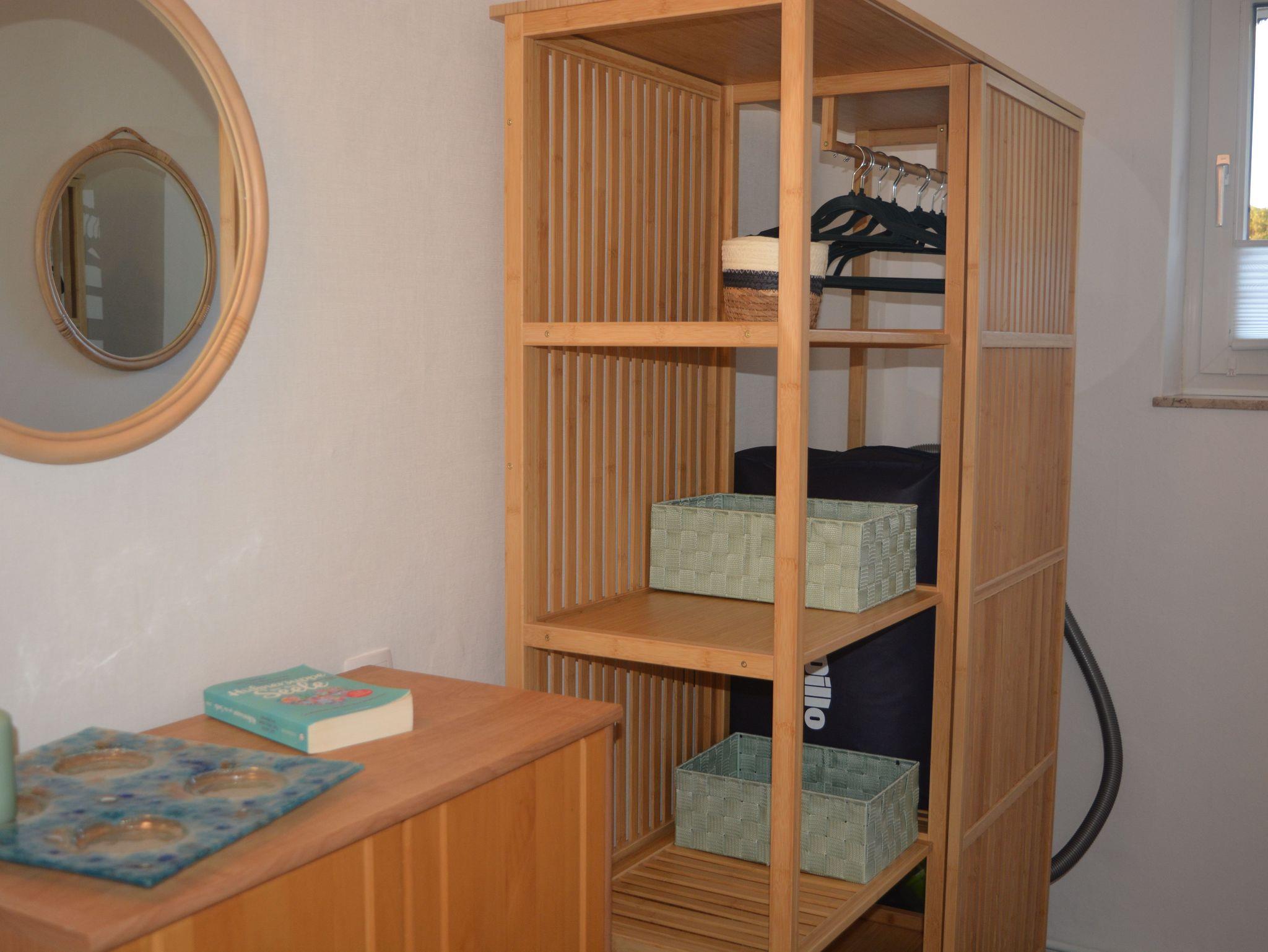steht eine Kommode und ein offener Kleiderschrank. Sie haben hier die