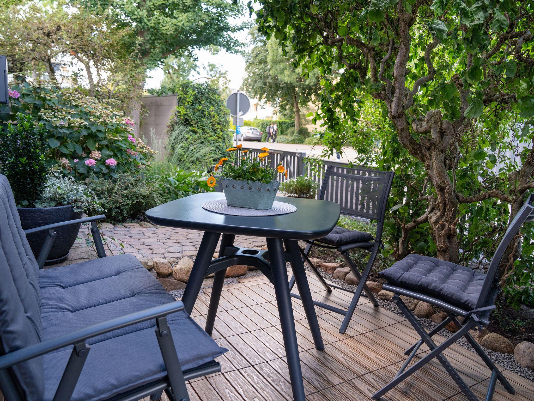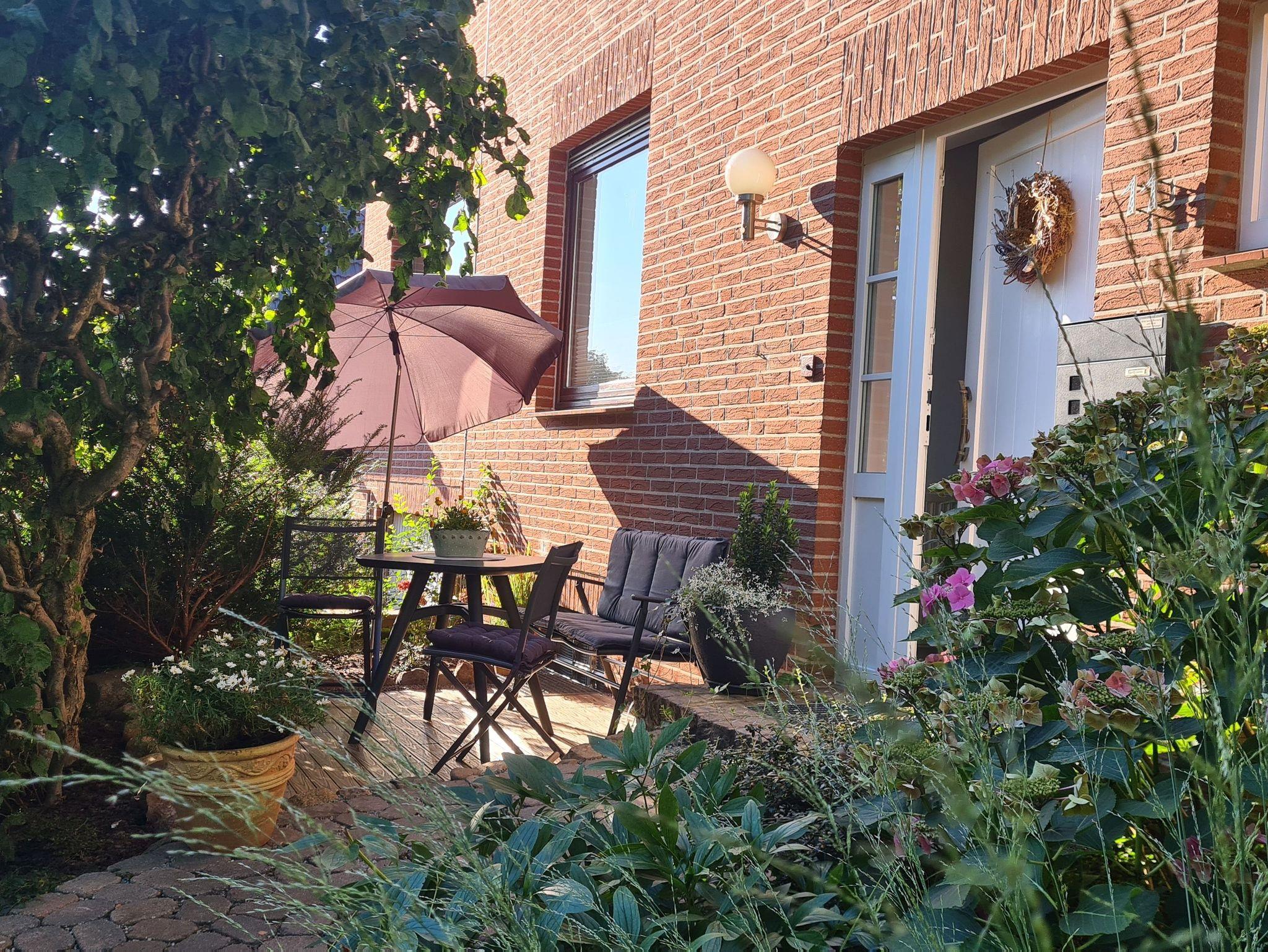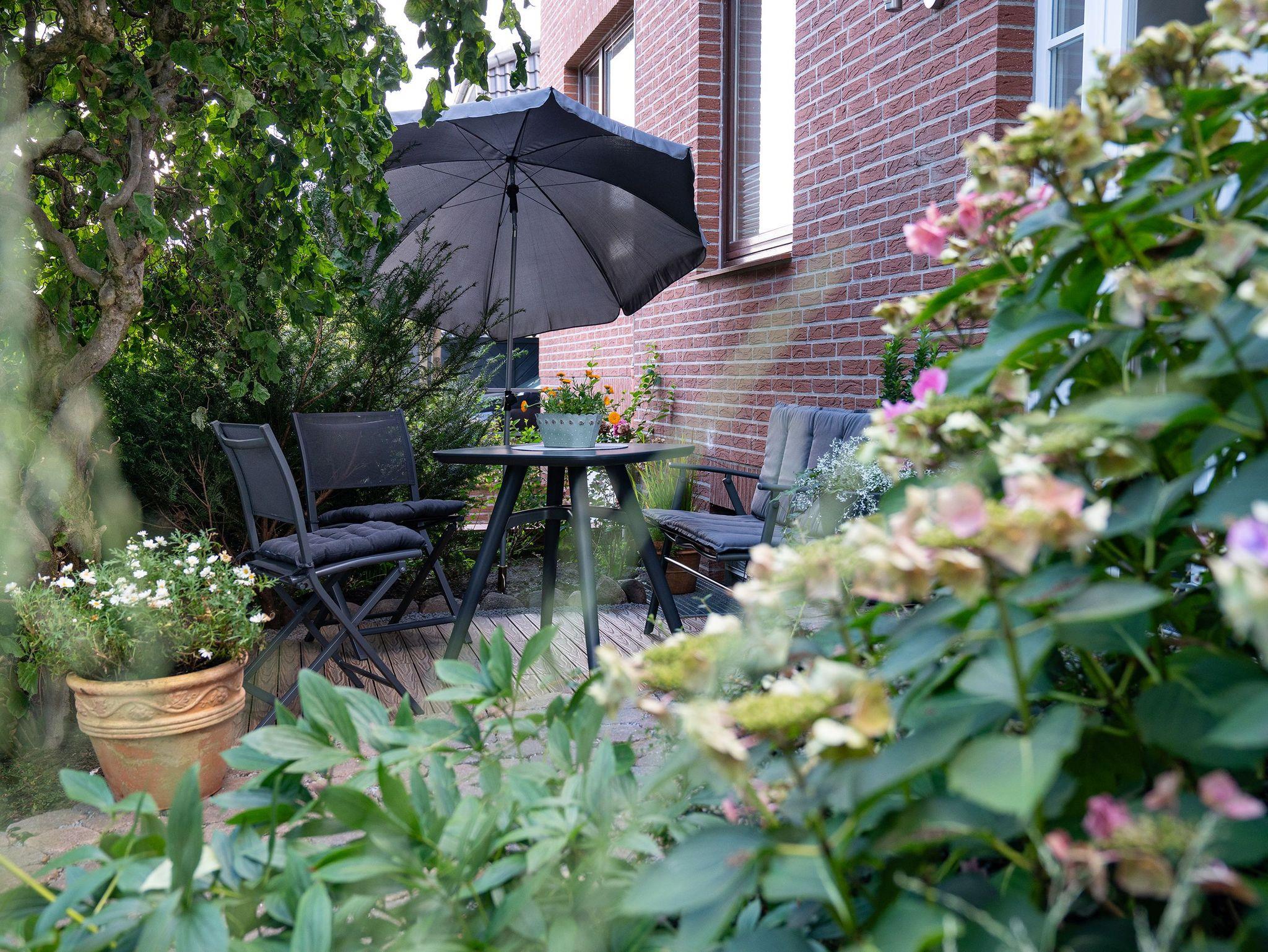 Auf der gemütlichen Terrasse lässt es sich herrlich in der Morgensonne frühstücken oder ein erlebnisreicher Tag findet hier bei einem Gläschen Wein entspannt seinen Ausklang.