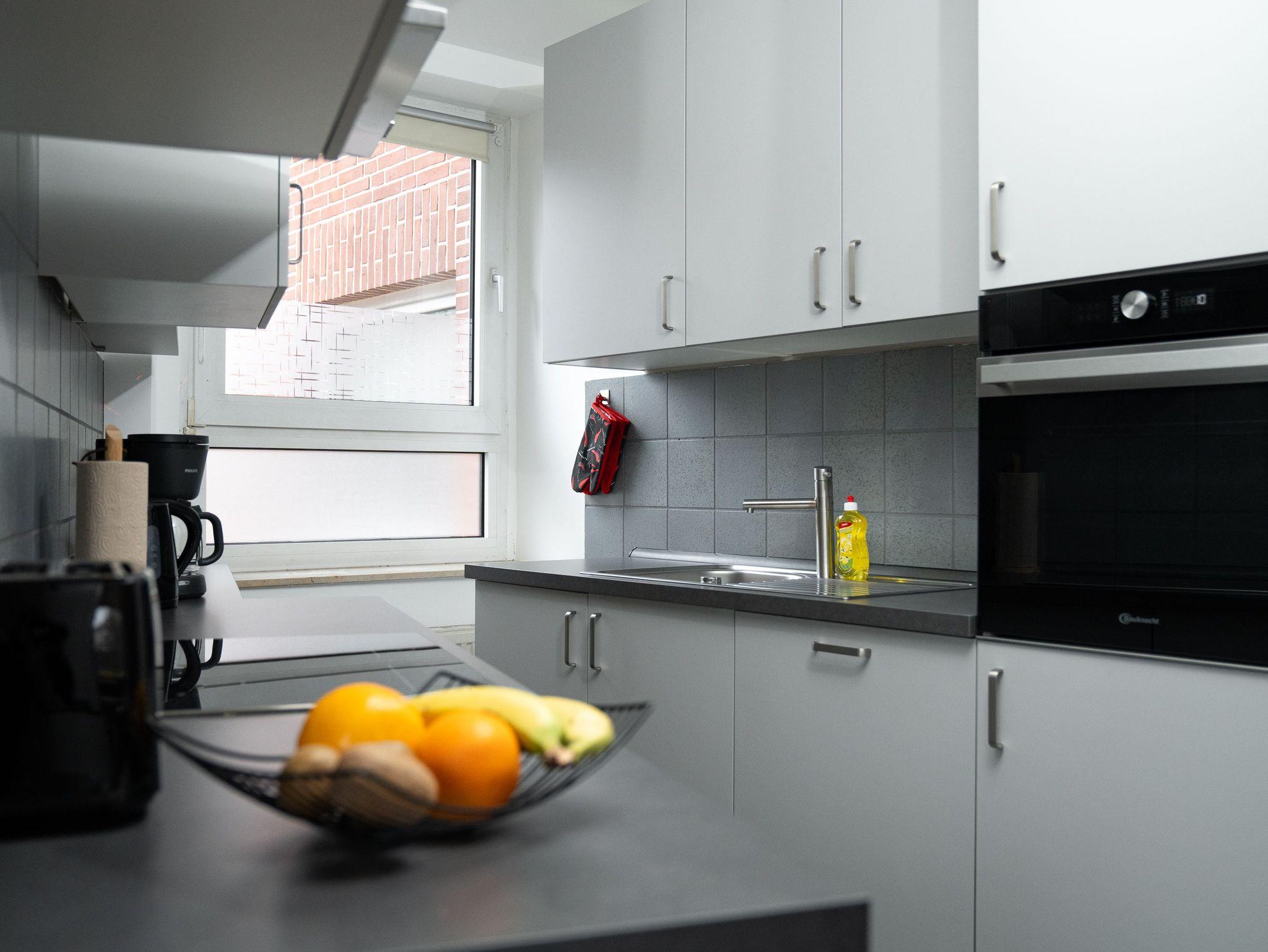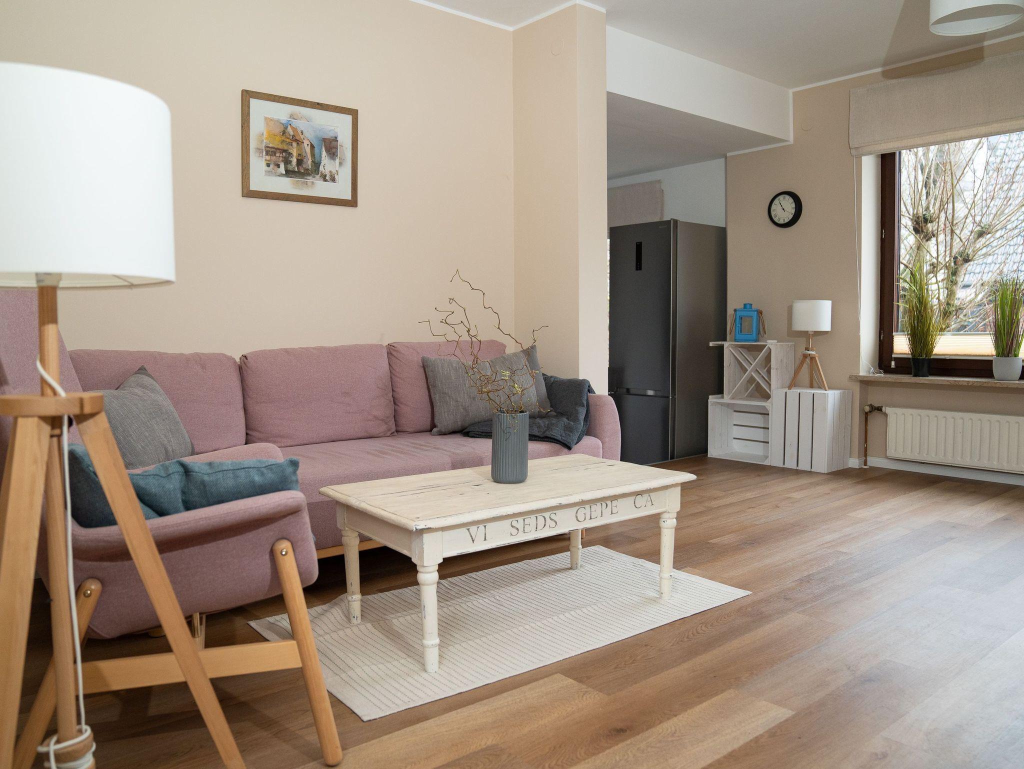Im Erdgeschoss findet man die komplett ausgestattete Küche, ein modernes, helles Wohnzimmer, den Essbereich für 4 Personen und ein Gäste-WC.
