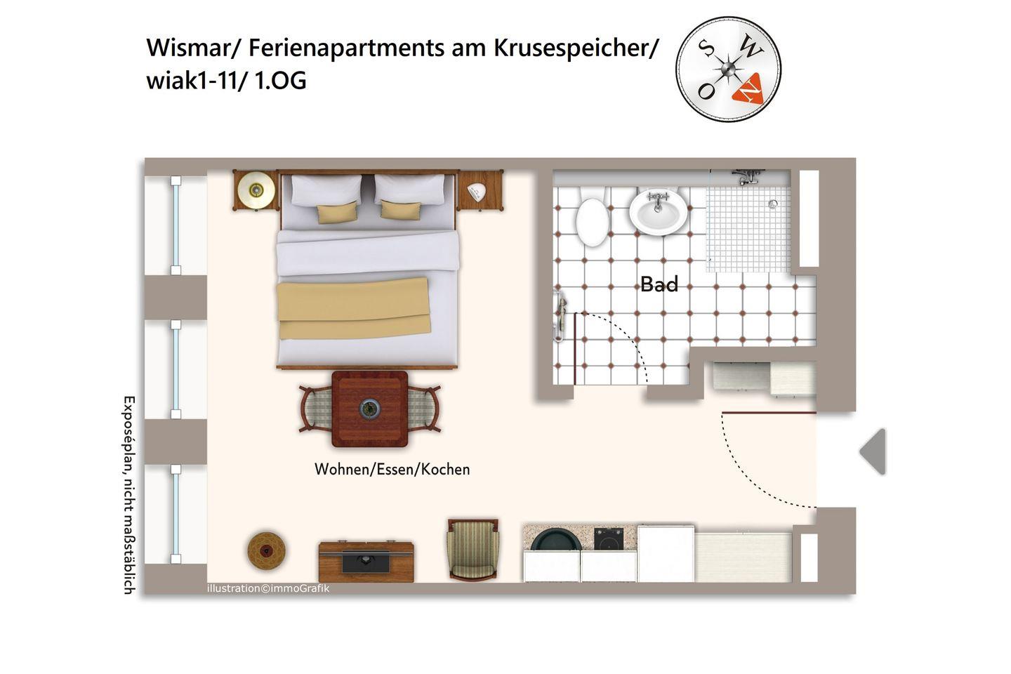 Das 26 m² große 1- Zimmer Apartment befindet sich in den Ferienapartments am Krusespeicher und ist für bis zu 2 Personen geeignet. Das modern konzipierte Apartment verfügt über kostenfreies WLAN und Fußbodenheizung.