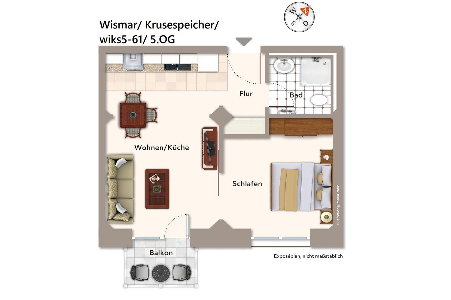 Das Nichtraucher-Apartment in Ost-Lage befindet sich im 5. Obergeschoss des denkmalgeschützten Krusespeichers. Der Alte Hafen von Wismar, einer der attraktivsten Orte der weltoffenen Hansestadt, liegt euch zu Füßen. Von hier aus lässt sich die Stadt und das wunderschöne Umland ideal erkunden. Der Alte Hafen ist übrigens überaus beliebter Veranstaltungsort für Events und Feste und überdies Original-Drehort für SOKO Wismar, die bekannte ZDF-Serie!