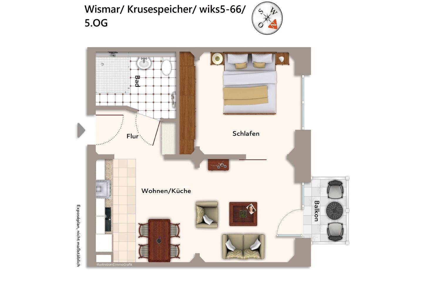 Das Nichtraucher-Apartment in West-Lage befindet sich im 5. Obergeschoss des denkmalgeschützten Krusespeichers. Der Alte Hafen von Wismar, einer der attraktivsten Orte der weltoffenen Hansestadt, liegt euch zu Füßen. Von hier aus lässt sich die Stadt und das wunderschöne Umland ideal erkunden. Der Alte Hafen ist übrigens überaus beliebter Veranstaltungsort für Events und Feste und überdies Original-Drehort für SOKO Wismar, die bekannte ZDF-Serie!