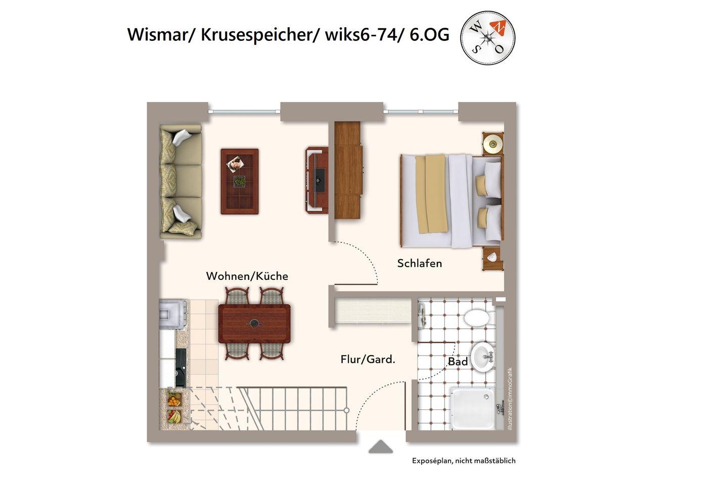 Das Nichtraucher-Apartment in West-Lage befindet sich im 6. Obergeschoss des denkmalgeschützten Krusespeichers und verläuft über zwei Wohnebenen. Der Alte Hafen von Wismar, einer der attraktivsten Orte der weltoffenen Hansestadt, liegt euch zu Füßen. Von hier aus lässt sich die Stadt und das wunderschöne Umland ideal erkunden. Der Alte Hafen ist übrigens überaus beliebter Veranstaltungsort für Events und Feste und überdies Original-Drehort für SOKO Wismar, die bekannte ZDF-Serie!