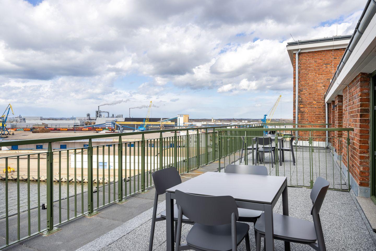Das 73 m² große 3-Zimmer Maisonette-Apartment ist für bis zu 4 Personen geeignet. Das lichtdurchflutete Apartment verfügt über zwei Wohnebenen, einen Balkon und eine Dachterrasse mit einzigartigem Panoramablick über den Hafen von Wismar.