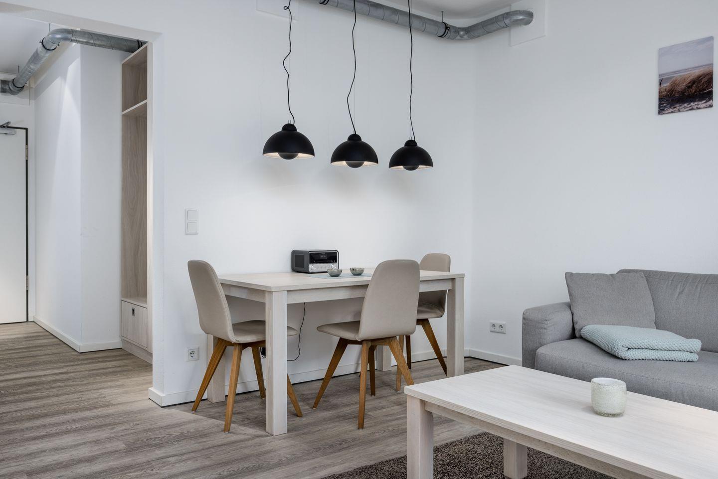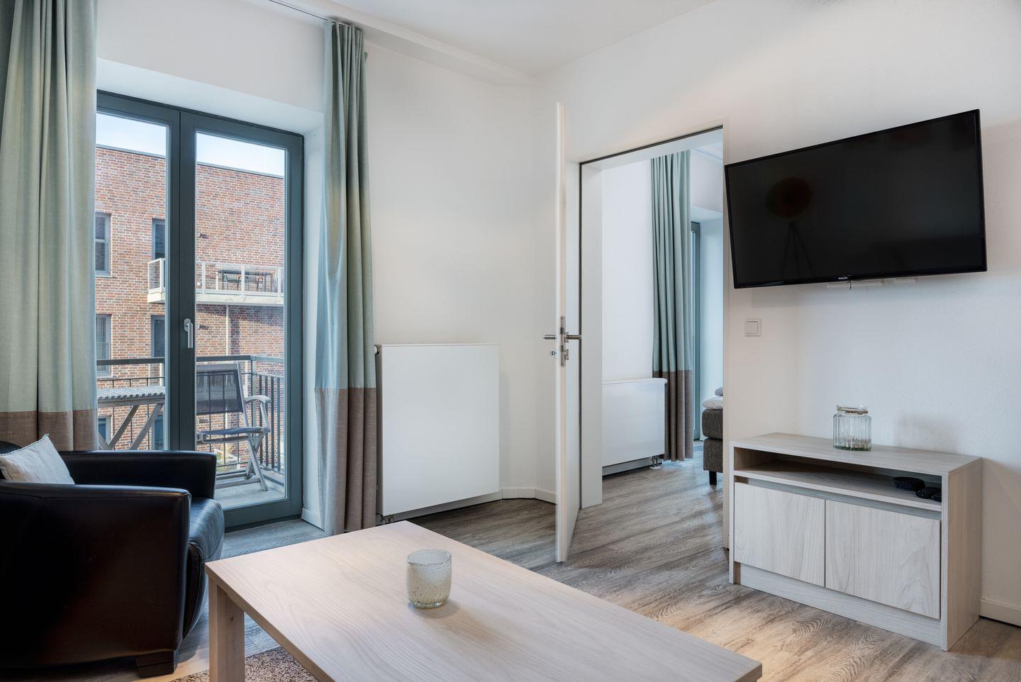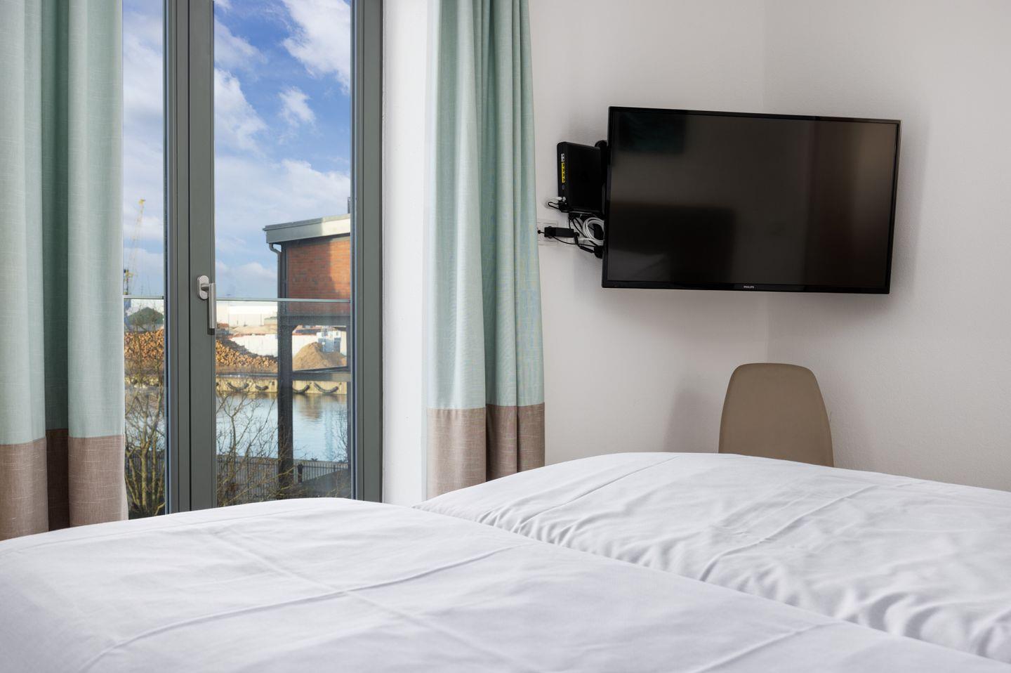 Im kombinierten Wohn-Essbereich befindet sich die voll ausgestattete offene Küche mit Geschirrspüler, Kühlschrank mit Tiefkühlfach, Herd mit 4 Glaskeramikkochfeldern und Backofen, Kaffeemaschine, Toaster und Wasserkocher sowie der Sitzbereich mit Doppelschlafcouch (1,40 x 2,00 m) , Flatscreen-TV, Radio, CD-Player, Büchern und Gesellschaftsspielen. Das geschmackvolle Badezimmer verfügt über ebenerdige Dusche, Waschbecken, WC, Handtuchwärmer, Kosmetikspiegel und Föhn. Das separate Schlafzimmer bietet euch ein komfortables Boxspring-Doppelbett (1,80 x 2,00 m) und einen Flatscreen-TV. Sowohl vom Schlafzimmer als auch vom Wohnbereich aus habt ihr Zugang zum Balkon in Nord-West-Lage. Hier genießt ihr den wundervollen Ausblick auf die maritime Hafenkulisse.