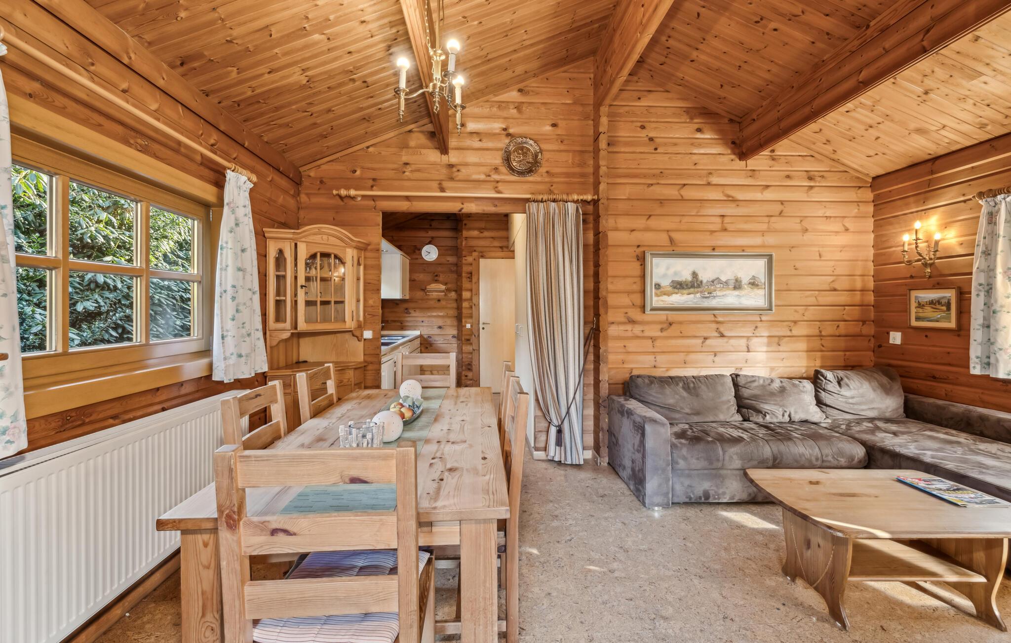 Nyd et ophold tæt på naturen i dette charmerende træhus nær søen Dankern. Huset er noget særligt med en varm, hjemlig atmosfære med en rustik træstemning indeni. Slap af i den rummelige stue med et komfortabelt opholdsområde og praktisk spiseplads. Brug det praktisk udstyrede køkken til at tilberede lækre måltider sammen. Opholdsområdet lægger op til at spille spil sammen eller lægge planer for de kommende dage.
