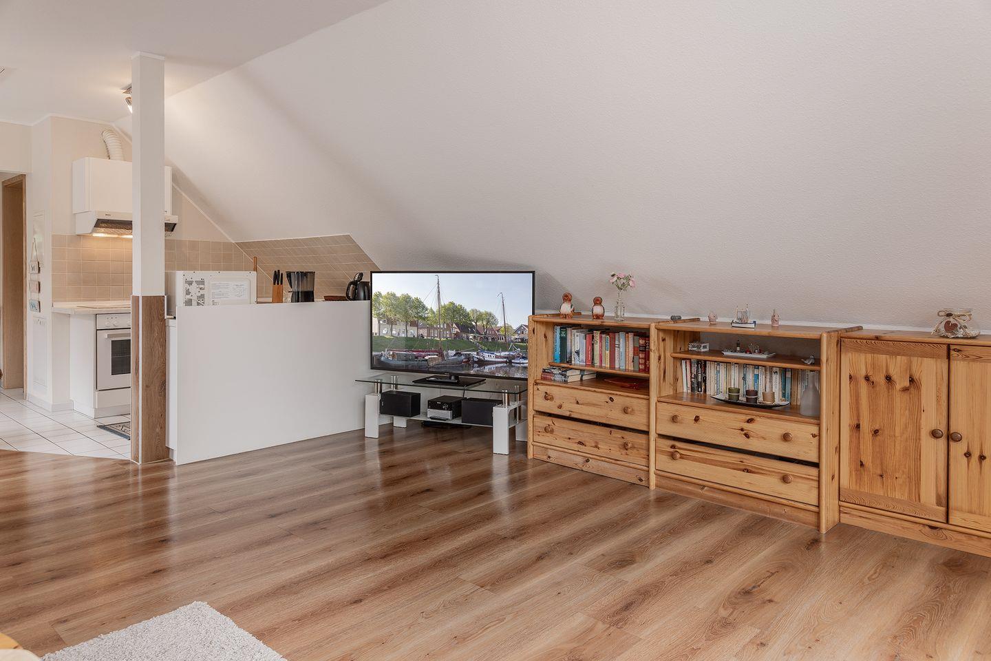 Diese Obergeschosswohnung bietet Platz für 2 bis 3 Personen und ein gemütliches Ambiente. Sie liegt direkt am Yachthafen, in dem zahlreiche Segelschiffe und Motoryachten während der Sommersaison beheimatet sind.