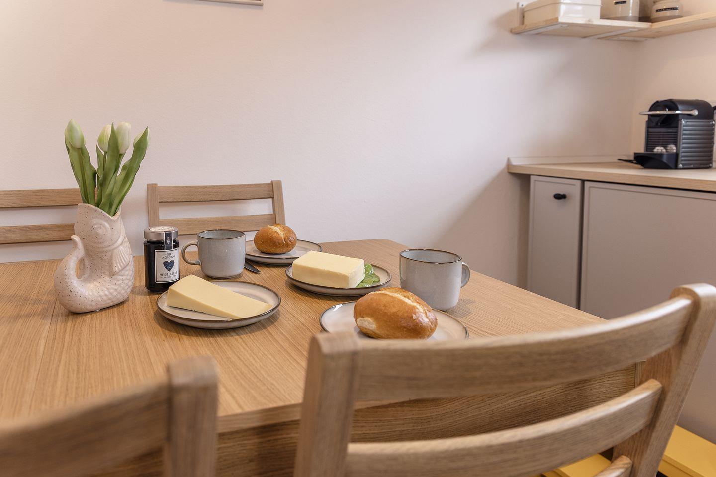 Separate Küche mit Essbereich, Kinderhochstuhl (Tripp Trapp), Tritthocker für Kinder, Herd, Spülmaschine, Mikrowelle etc.