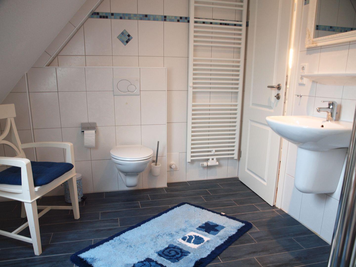 Die Unterkunft verfügt über insgesamt fünf Zimmer, darunter drei komfortable Schlafzimmer, die mit Laminatboden ausgestattet sind und eine erholsame Schlafumgebung bieten. Das moderne Badezimmer ist mit einer Dusche und Badewanne ausgestattet, sodass Sie nach einem langen Tag am Strand entspannen können. Hier finden Sie auch das WC sowie Waschbecken und Spiegel. Für zusätzlichen Komfort sorgt ein Gäste-WC in der Unterkunft.