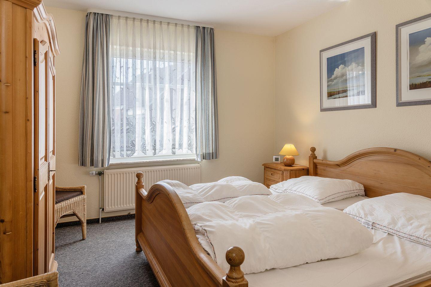 1 Bad mit Dusche und Waschbecken, 1 Bad mit WC und Waschbecken, Abstellraum, 2 Schlafzimmer mit je 1 Doppelbett.