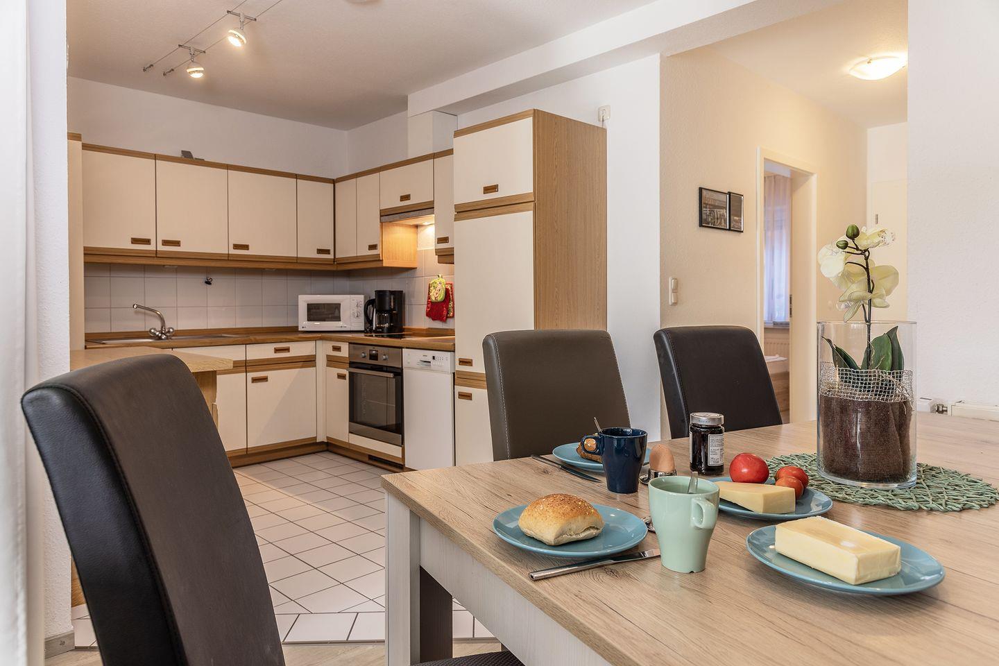 Komplett eingerichtete Küche, Bad mit Dusche, WC und Waschmaschine sowie Trockner,
