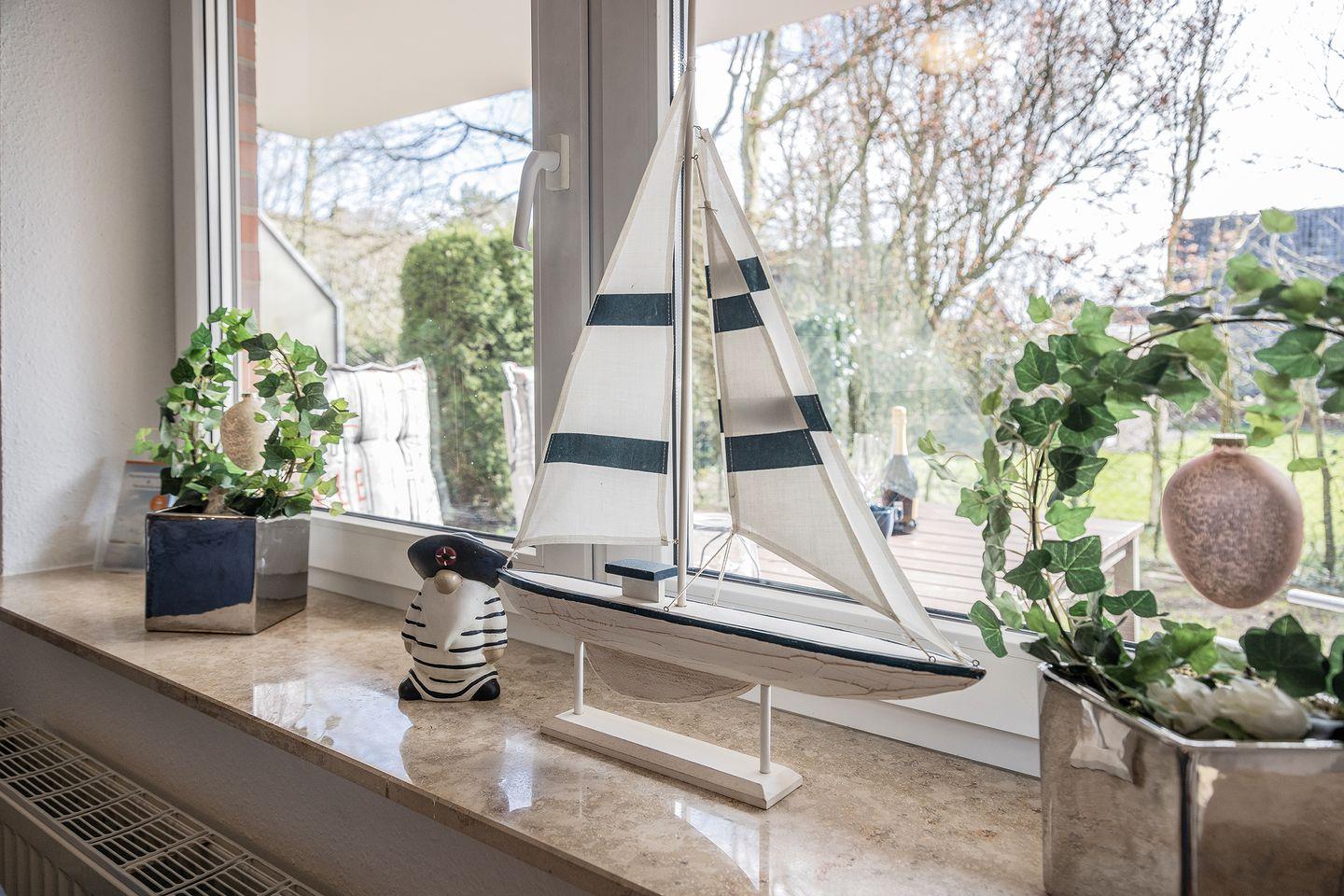Vollends auf Bequemlichkeit aus: Die Erdgeschosswohnung mit ihren ca. 60 qm brilliert durch das komfortable Interieur und die schöne Terrasse. Ferner liegt sie direkt am Yachthafen, in dem zahlreiche Segelschiffe und Motoryachten während der Sommersaison beheimatet sind.