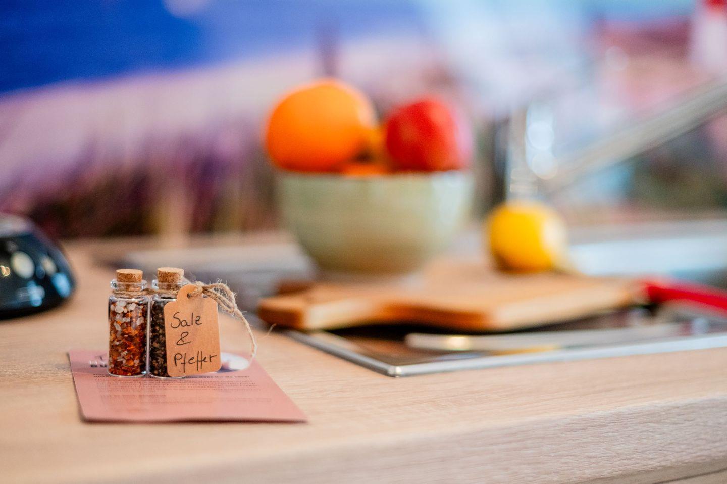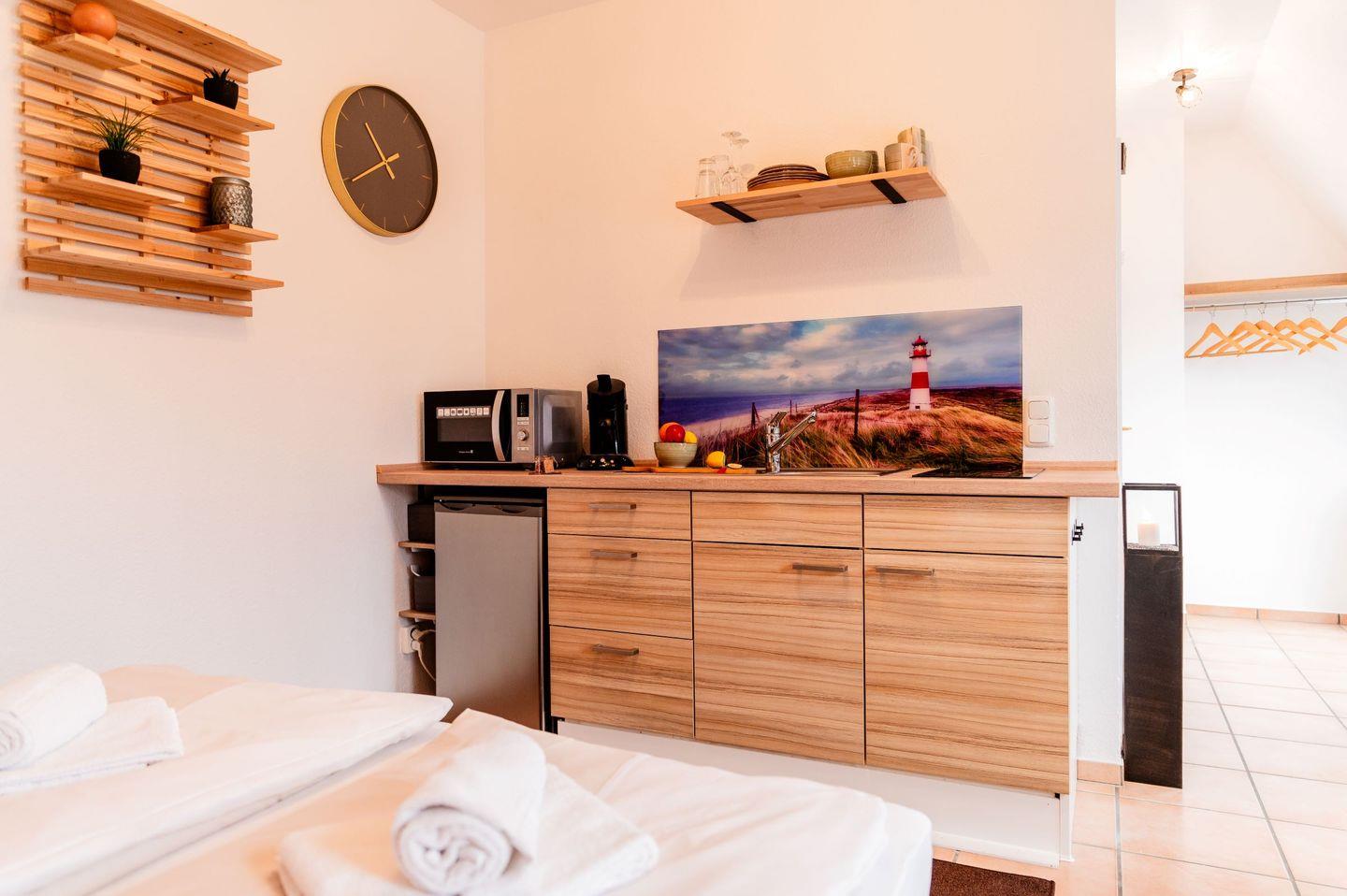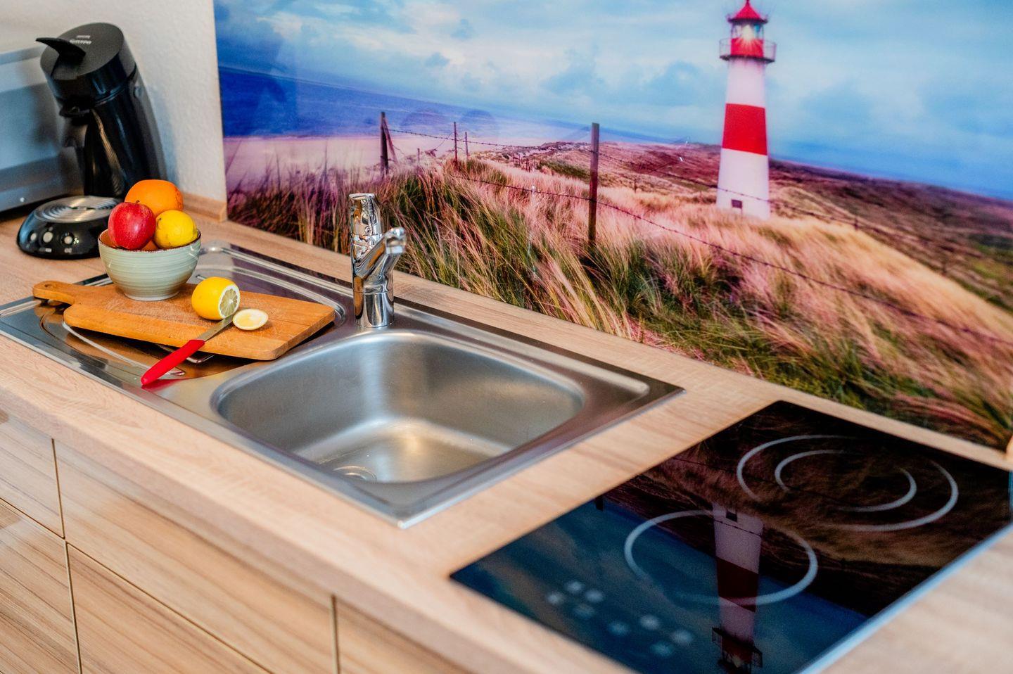 Kleine Küchenzeile: Bereite Deine Lieblingsgerichte in der gut ausgestatteten Küchenzeile zu, die mit allem Notwendigen ausgestattet ist.