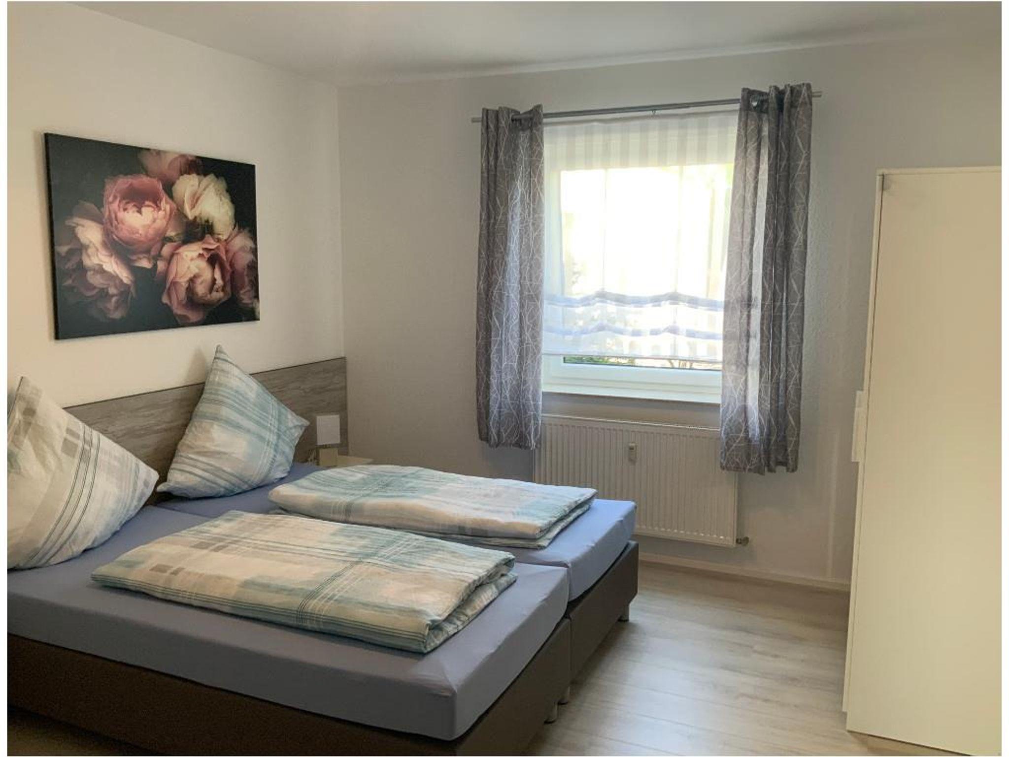 Helle, freundliche und sehr geräumige Wohnung. Offener Wohn- und Küchenbereich mit SAT-TV/Radio, Mikrowelle und 4 Plattenherd und gemütlicher Wohnlandschaft mit Schlafcouch, sep. Essbereich. Ein Schlafzimmer mit Boxspringbetten, Einzelbett und ein weiteres Schlafzimmer mit 2 Einzelbetten, exkl. Badausstattung mit Dusche und Badewanne, Waschbecken und WC. Die Wohnung hat eine Terasse und ist im EG. Kinderbett auf Wunsch möglich.