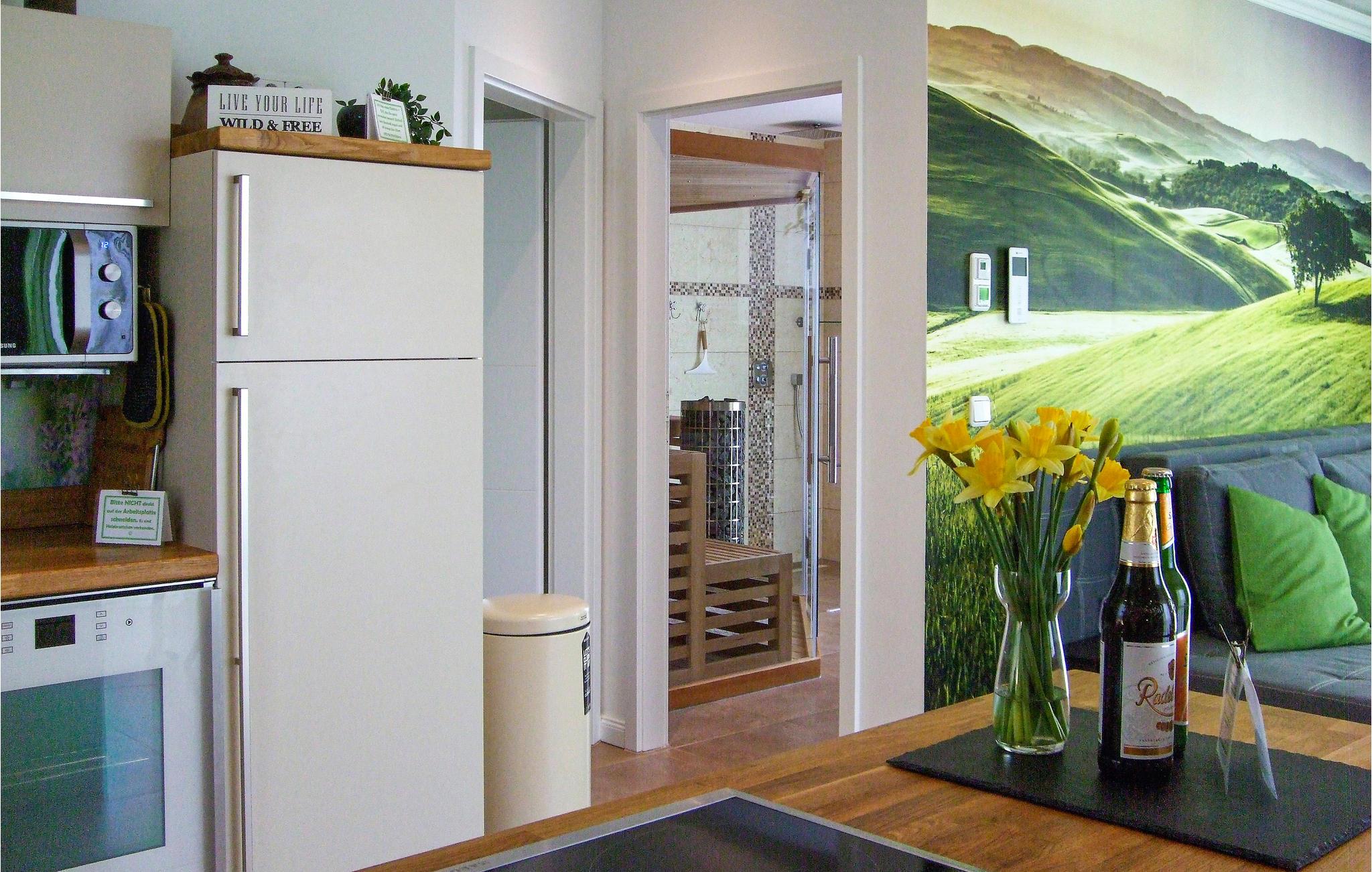 Den store kombinerede opholdsstue er udstyret med et moderne køkken, hvor intet mangler. Det rummelige badeværelse (kan bruges mod gebyr på stedet) tilbyder masser af plads og komfort. Efter en hyggelig saunaoplevelse kan I afslutte dagen på terrassen med et glas vin med udsigt over Harzskoven.
