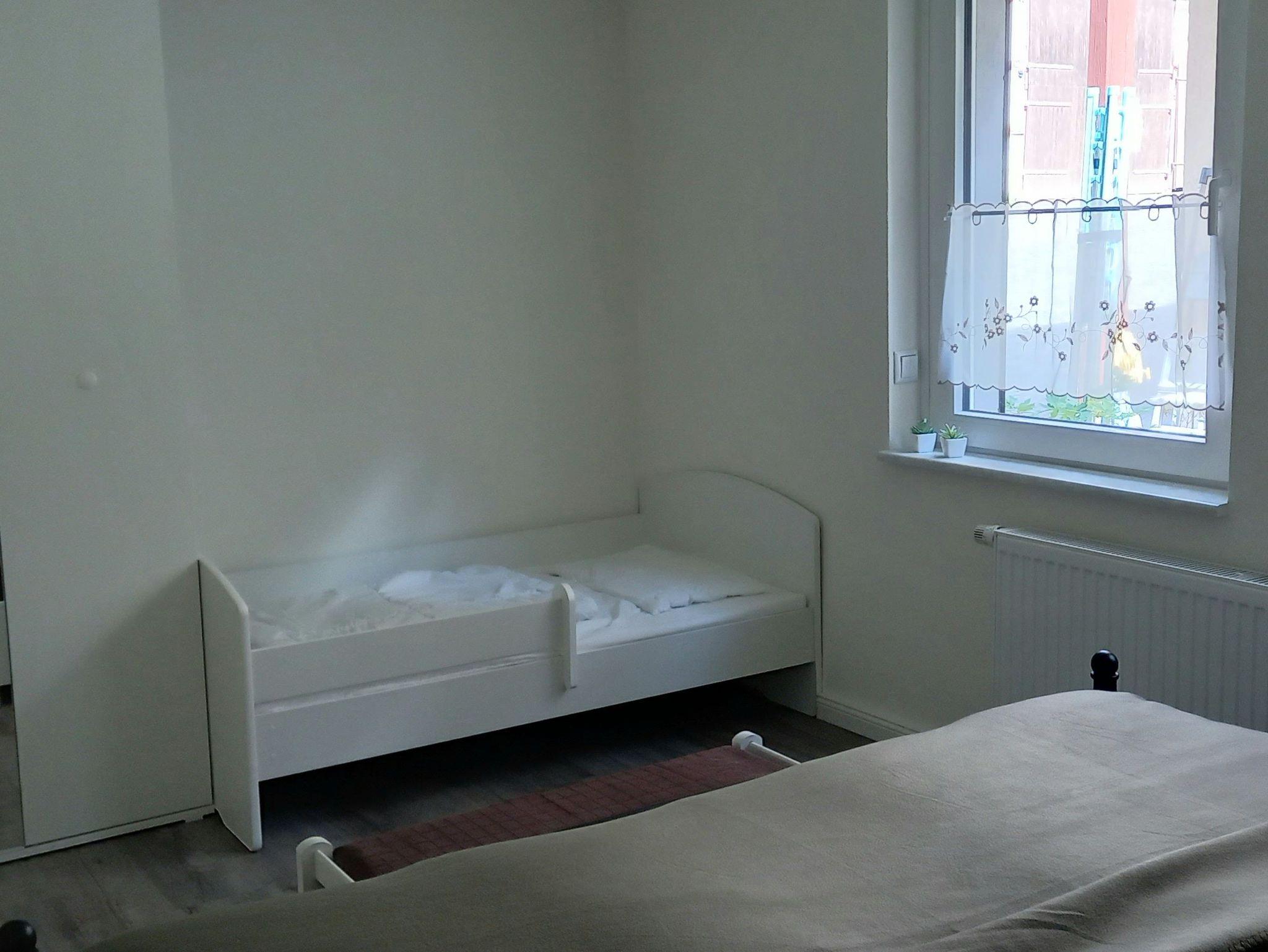 In einem Schlafzimmer befindet sich zusätzlich ein Kinderbett (80x160 cm), Hochstuhl ist ebenfalls vorhanden.