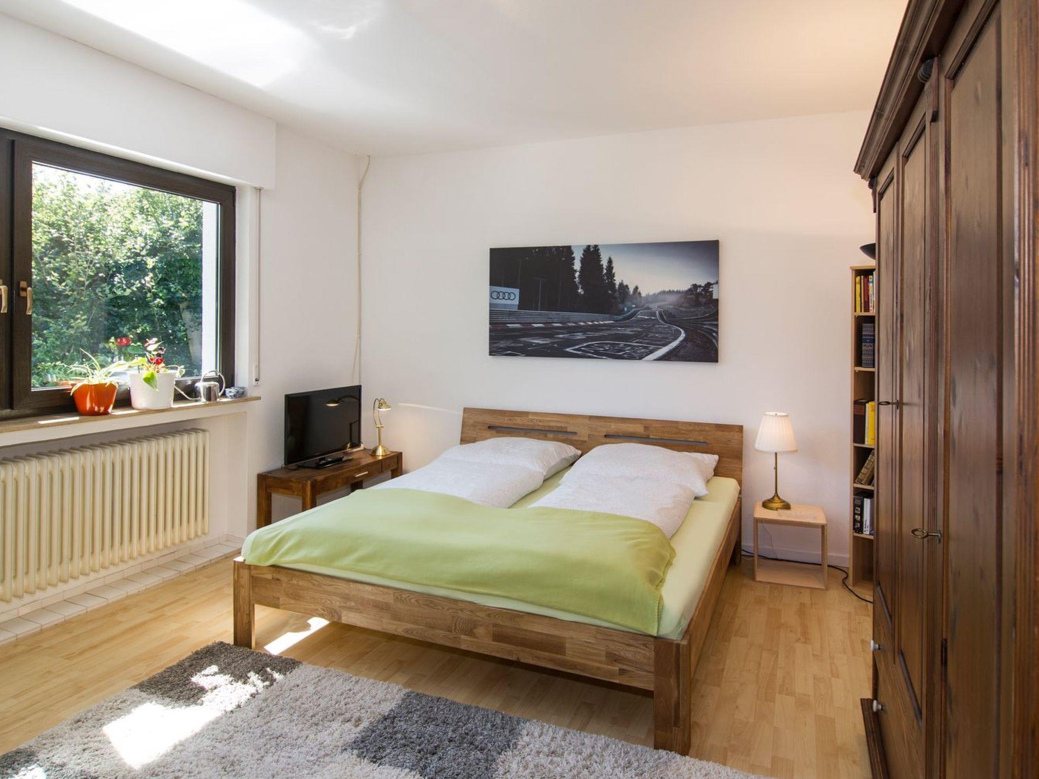 The ground floor comprises a generous and comfortable living room and dining room, upstairs there are individually furnished bedrooms. A big hallway leads into the house with a little shoe bench for sitting and changing shoes and wardrobes for coats and jackets. The big kitchen has a solid wooden table for 8 to 10 people and is equipped with all the necessary appliances: stove and oven, microwave and fridge, dishwasher and various coffee machines, a kettle and toaster. There is also a condiment rack, vinegar and oil, sugar and salt, a pepper mill and a basic stock of coffee and tea. The fireplace room provides a couple of armchairs and a low table, as well as a bright yellow sofa ideal for snuggling and reading. From here you can directly access the terrace and the garden. The lovely new bathroom is fitted with a toilet, washbasin and a walk-in shower behind a big glass wall. The window is opaque due to mirror foil, so nobody can look in from the terrace. The living room is divided into two: at the front there is a big area with wide armchairs and sofas for relaxing and watching TV, to the rear a big dining table that can be pulled out as a festive table. In the glasses cabinet you can find all sorts of wine and champagne glasses, beer glasses and cognac glasses etc. A door leads from the living room to the conservatory with terrace furniture, where you can also smoke in bad weather. The first floor comprises four individual bedrooms: bedroom Frieda with a kingsize bed (140cm wide) and a sofa bed (150cm wide) and a view of the horse pasture (towards the sunrise), bedroom Timo with two single beds and a supplementary bed facing the big garden, bedroom Oskar with a double bed (180cm wide) and a desk, as well as a wall TV, the windows also facing the garden, and finally bedroom Luise with a double bed 8180cm wide) and a view of the Kermeter. From the window you can also see the holiday resort Eifeler Tor. Extra blankets and pillows are available. There is a lovely hidden hideaway for children.