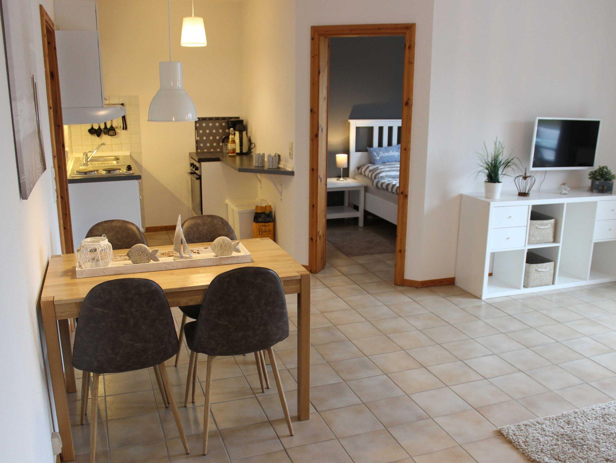 Die ebenerdige Ferienwohnung Backbord bietet mit ihrem modern eingerichteten lichtdurchfluteten Wohnraum und ihrem gemütlichem Schlafzimmer Platz für2 Personen. Das großzügige Doppelbett ist für Ihren erholsamen Schlaf mit hochwertigen Matratzen und Lattenrosten ausgestattet.