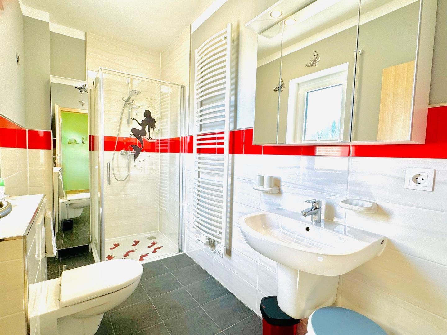 Weitere Annehmlichkeiten wie Fußbodenheizung, automatische Lüftungsanlage, Waschmaschine zur Eigennutzung und Fliegengitter sorgen für einen angenehmen Aufenthalt. Auch an Bügeleisen, Bügelbrett und Staubsauger wurde gedacht.