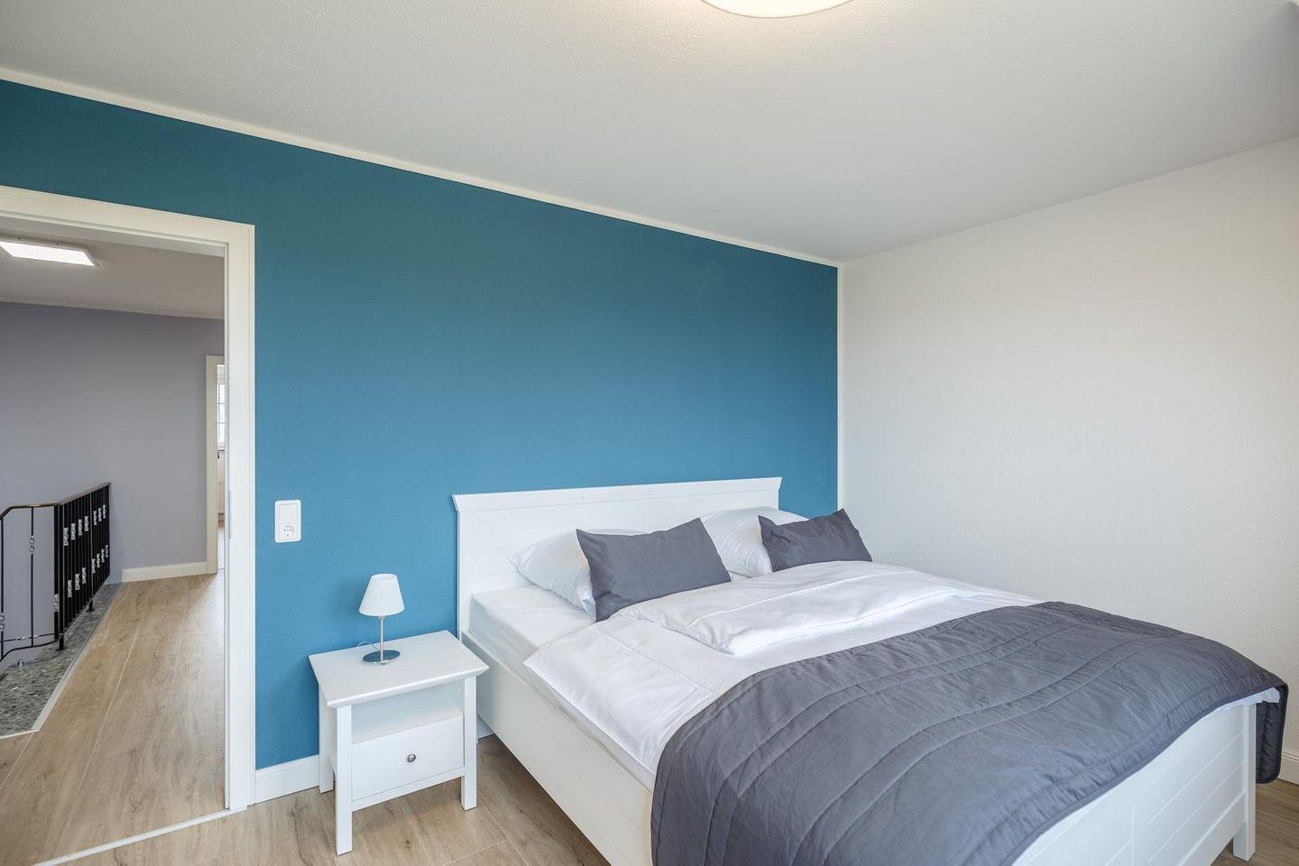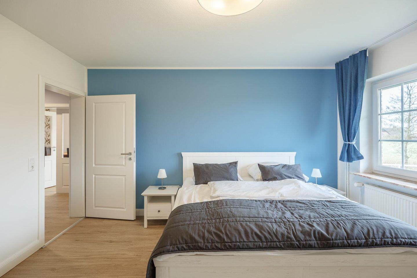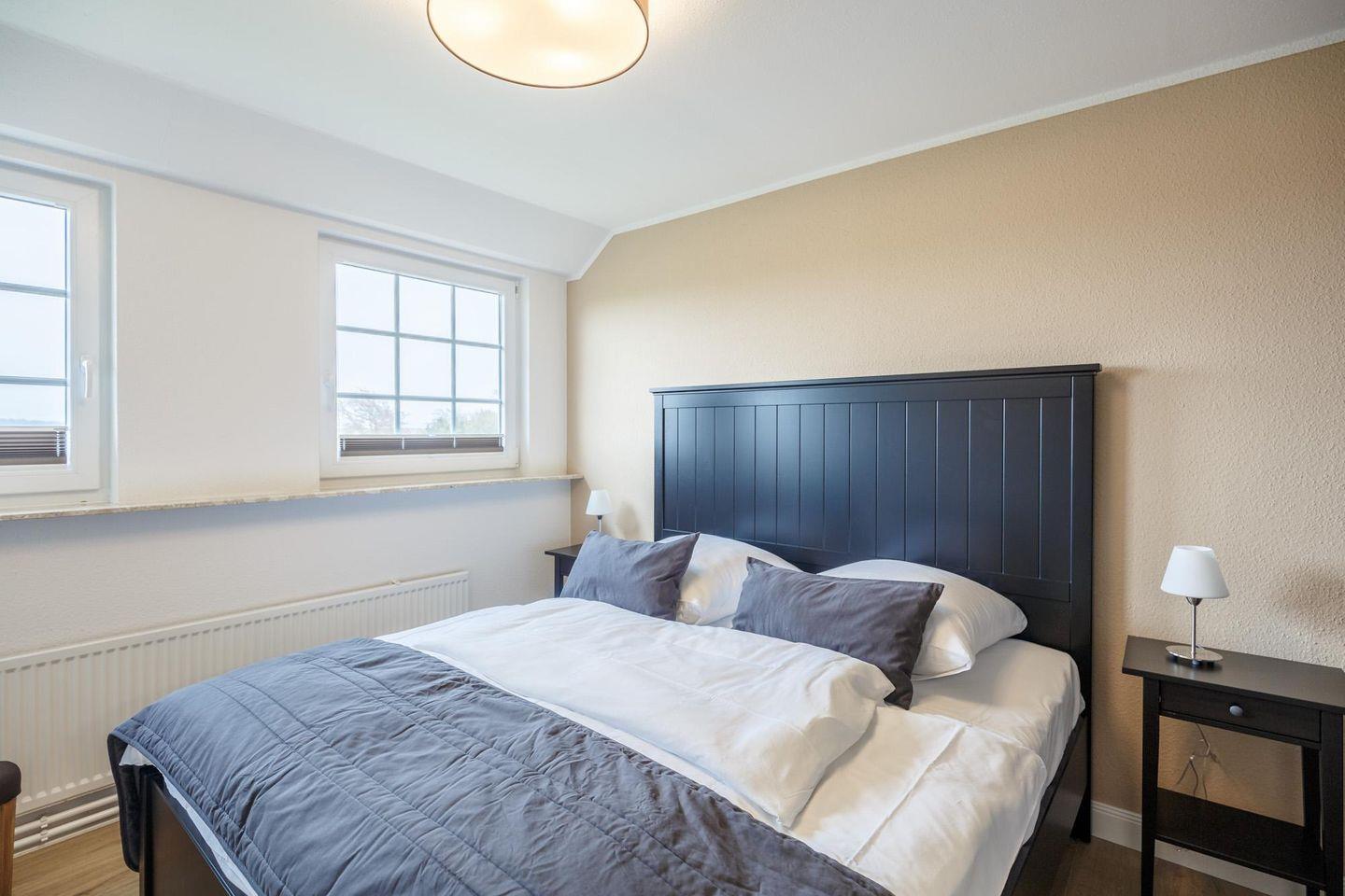 Das Ferienhaus ist mit seinen 150 qm Wohnfläche sehr geräumig. Es verfügt über vier Schlafzimmer: Eines befindet sich im Erdgeschoss (Bettengröße: 180 x 200) mit angrenzendem Duschbad und einer hochwertigen Infrarot-Sauna für 2–3 Personen, die anderen Schlafzimmer erreichen Sie über eine Treppe. Das Kinderschlafzimmer ist mit zwei getrennten Einzelbetten (90 × 200) ausgestattet, die anderen beiden Schlafzimmer mit bequemen Doppelbetten (180 x 200).