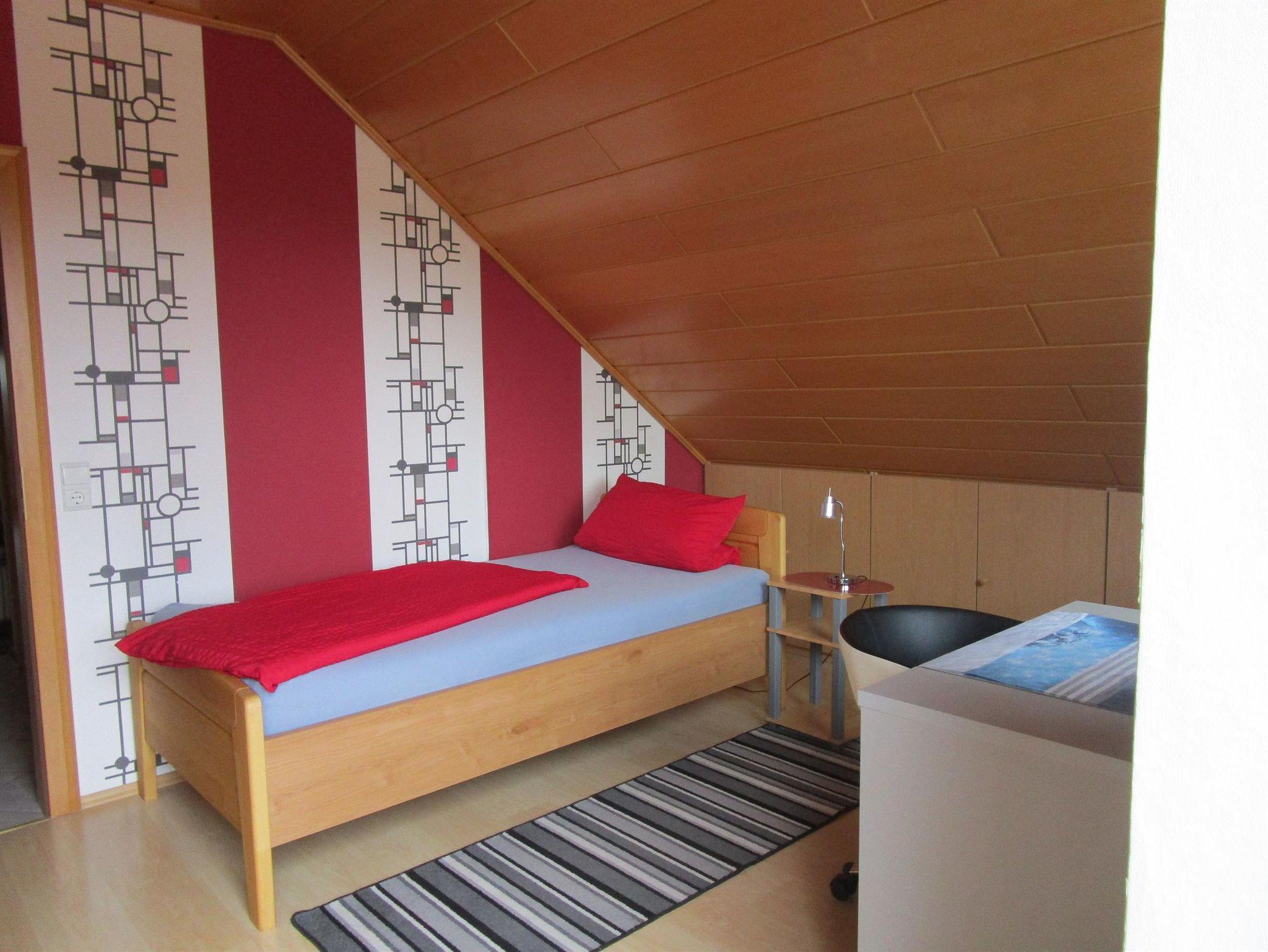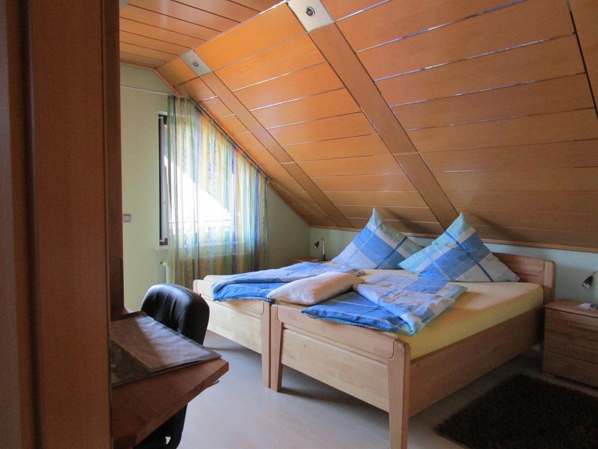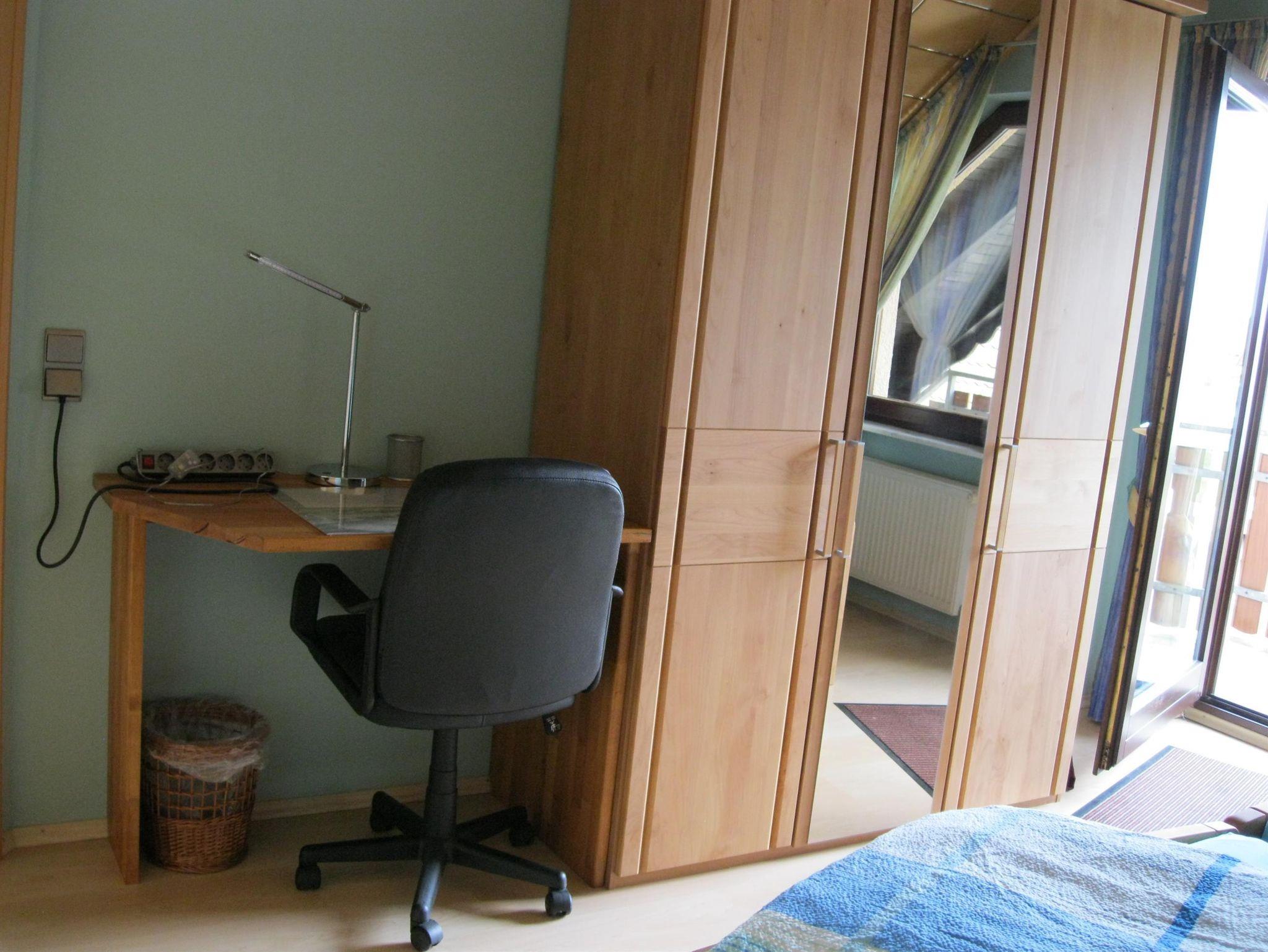 Alle Schlafzimmer verfügen über einen Schreibtisch mit Stuhl. Im Doppelzimmer können die Betten je nach Bedarf als Doppelbett oder auch einzeln gestellt werden. Baby-/Kleinkindergitterbett oder Kinderbett finden dort auch noch Platz (Preis jeweils 5€ pro ÜN). Kinderhochstuhl und Kinder-WC-Sitz können kostenfrei bereitgestellt werden.