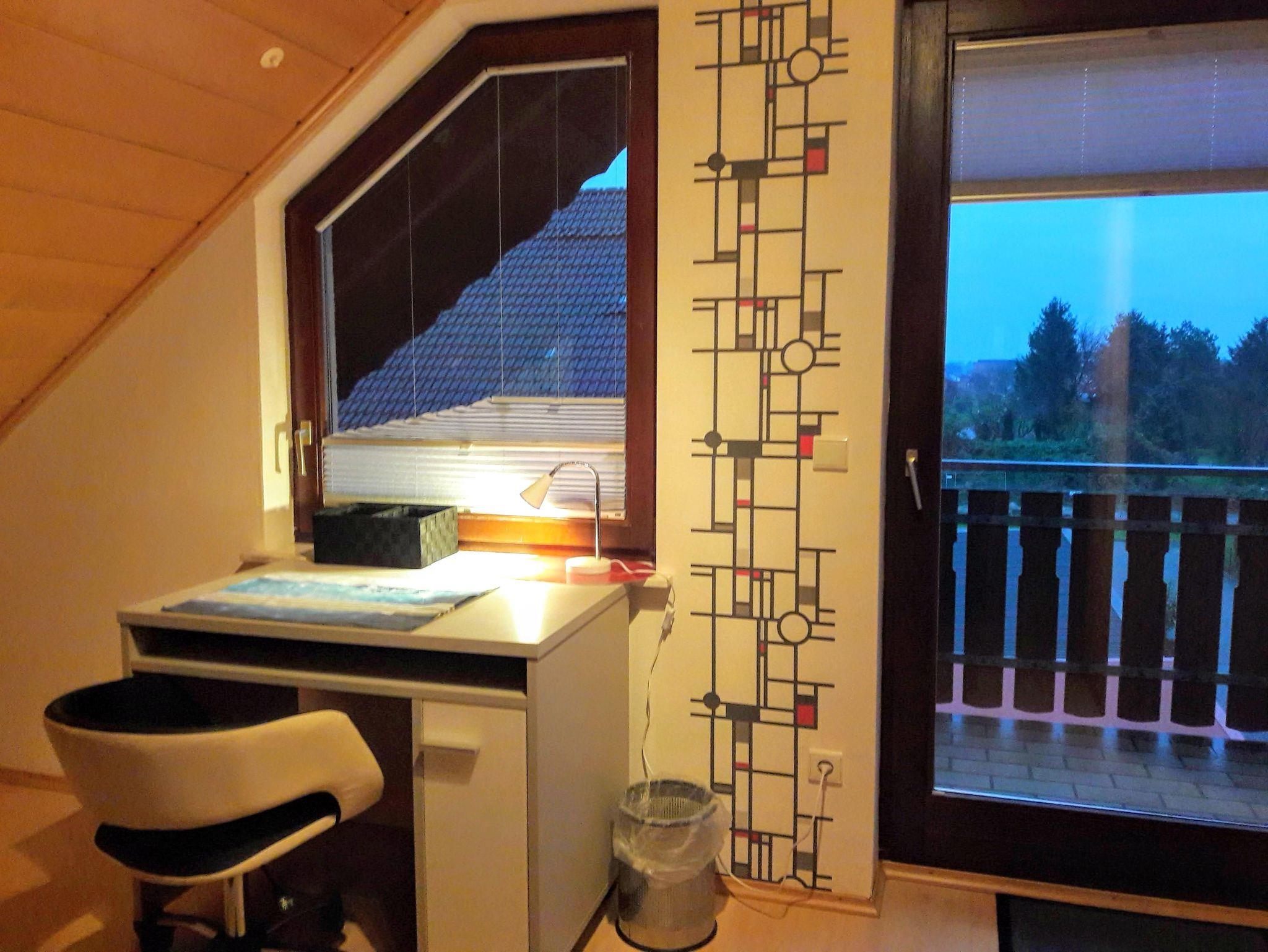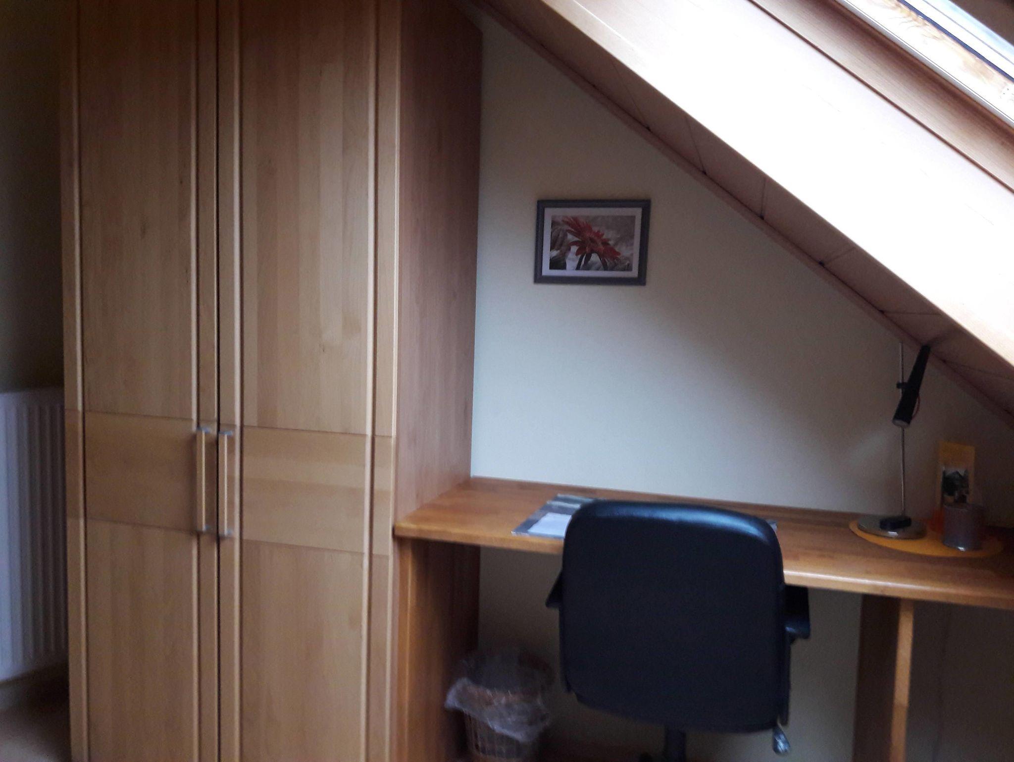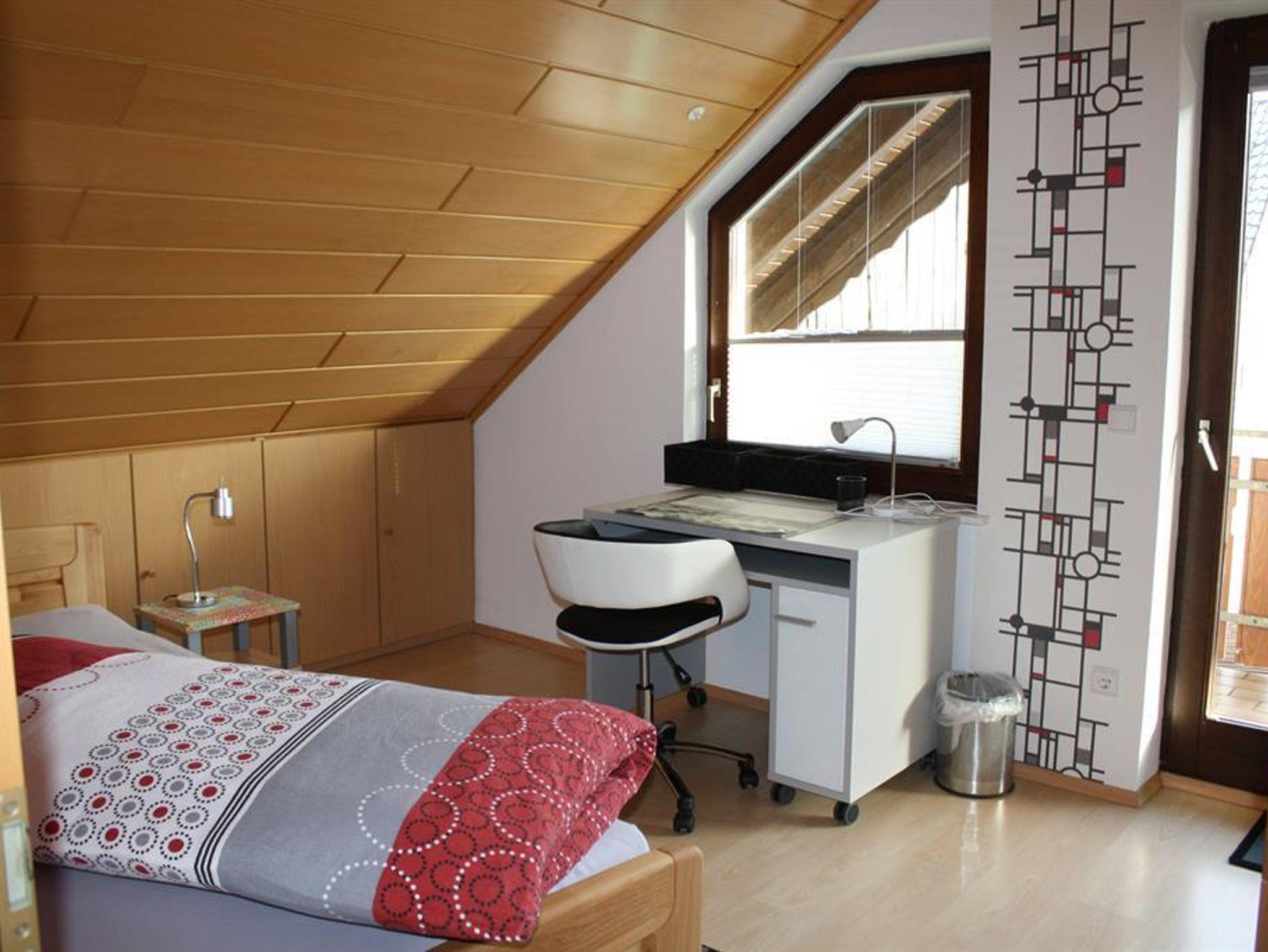 Alle Schlafzimmer verfügen über einen Schreibtisch mit Stuhl. Im Doppelzimmer können die Betten je nach Bedarf als Doppelbett oder auch einzeln gestellt werden. Baby-/Kleinkindergitterbett oder Kinderbett finden dort auch noch Platz (Preis jeweils 5€ pro ÜN). Kinderhochstuhl und Kinder-WC-Sitz können kostenfrei bereitgestellt werden.