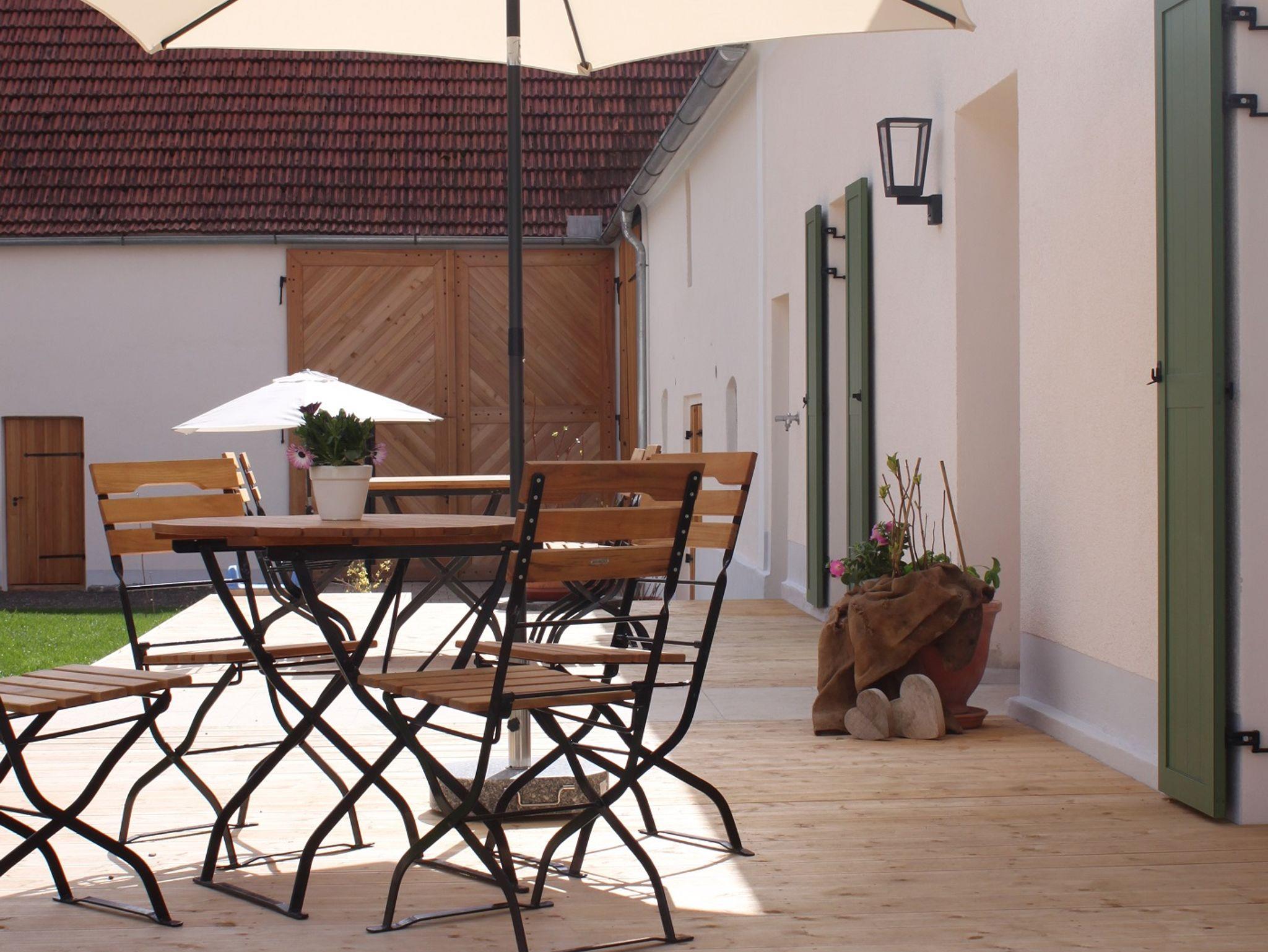 Im Innenhof und auf der Terrasse vor dem Gemeinschaftsraum finden sich Sitzgelegenheiten.