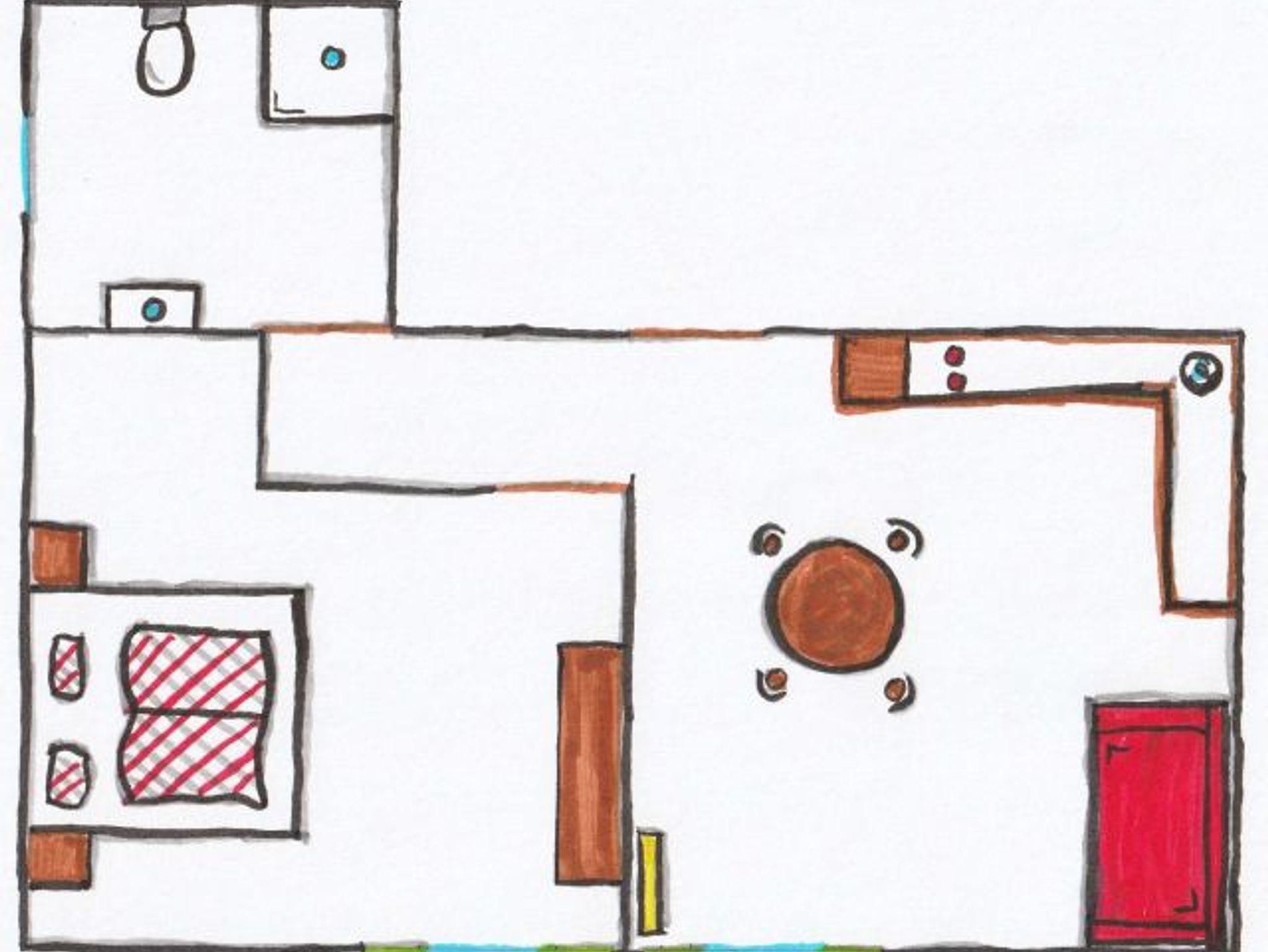 Unsere Zwei-Zimmerwohnung Jakob ist 45m² groß und ideal für 2 Personen. Sie besteht aus einem Schlafzimmer, Wohnzimmer, Küche und Badezimmer mit Dusche und WC.