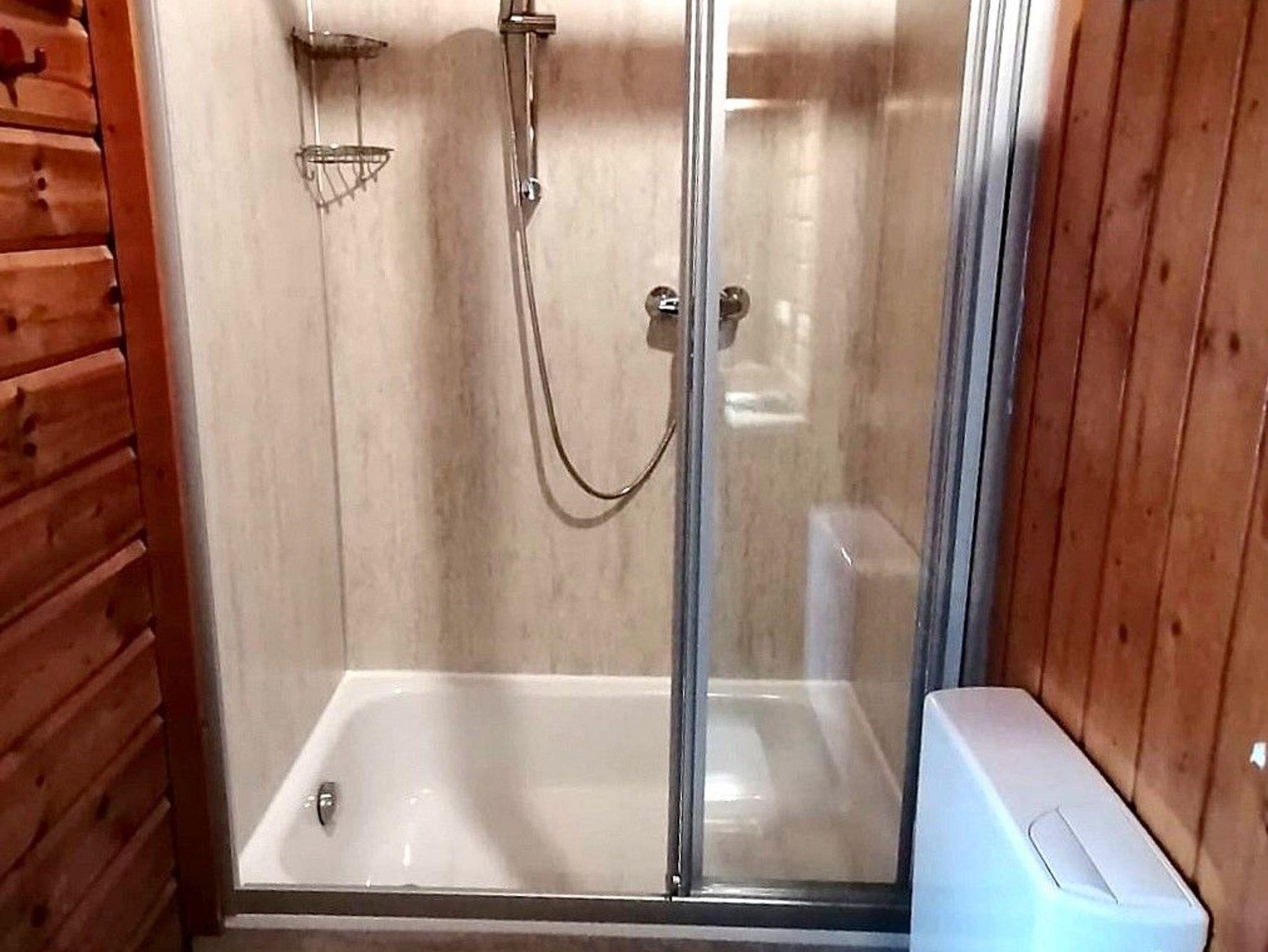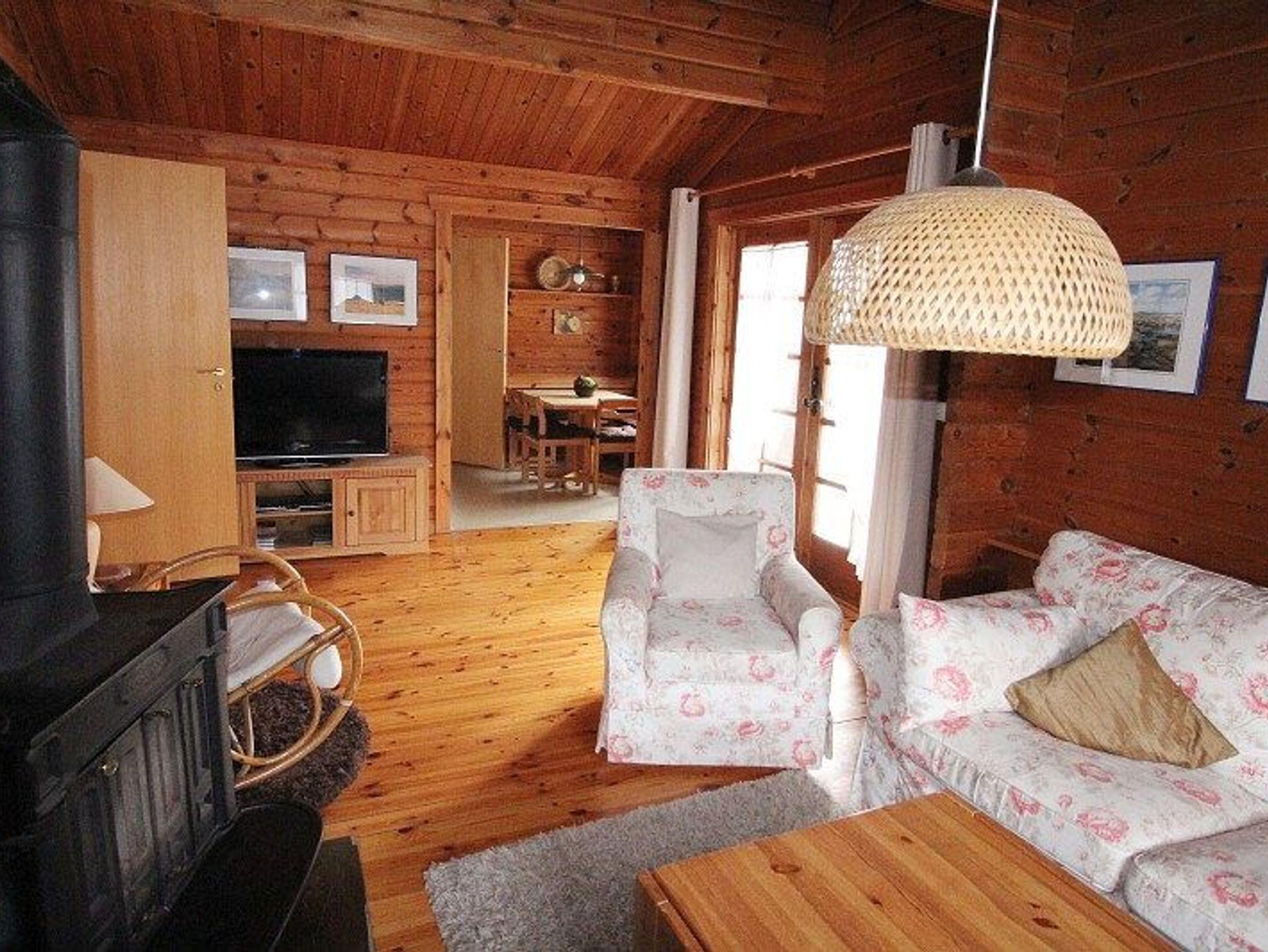 Gemütlich und liebevoll eingerichtetes Blockhaus mit Internet/ WLAN in exklusiver Randlage mit 70 m² Wohnfläche für bis zu 4 Personen. Großes Wohnzimmer, komplett ausgestattete Küche mit Essbereich, ein Schlafzimmer mit Doppelbett, ein Schlafzimmer mit hochwertiger Schlafcouch (140 cm breit),Bad mit Waschbecken, WC und Dusche (en suite) sowie ein separatesGäste WC mit Waschbecken.