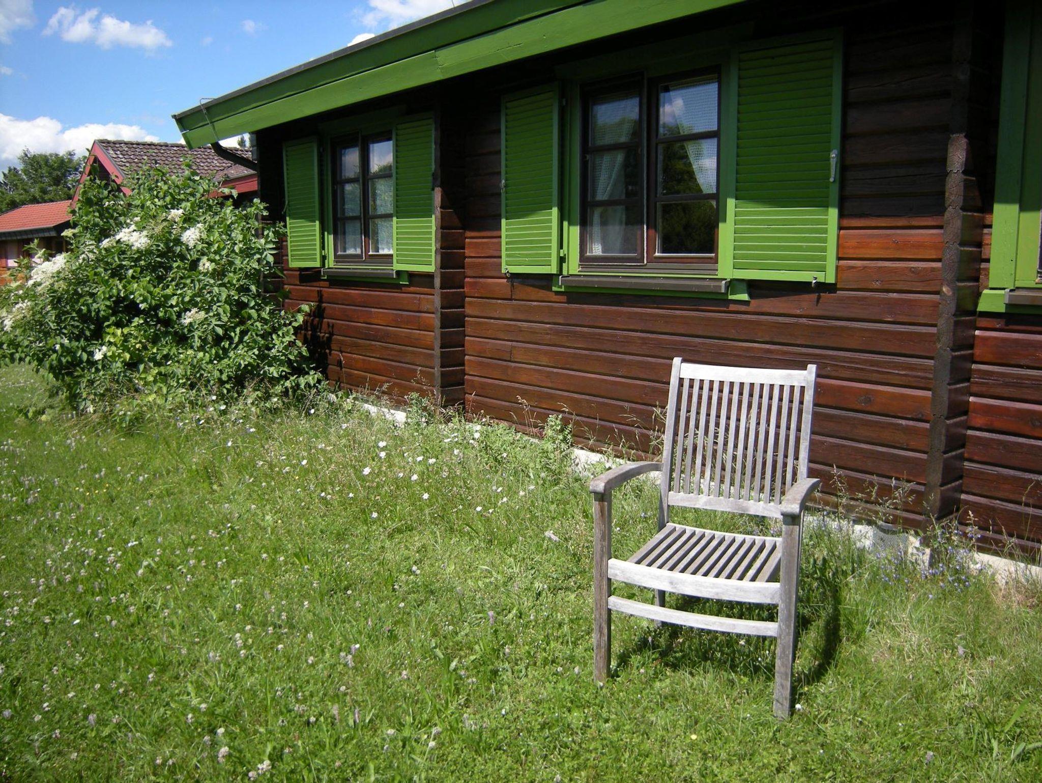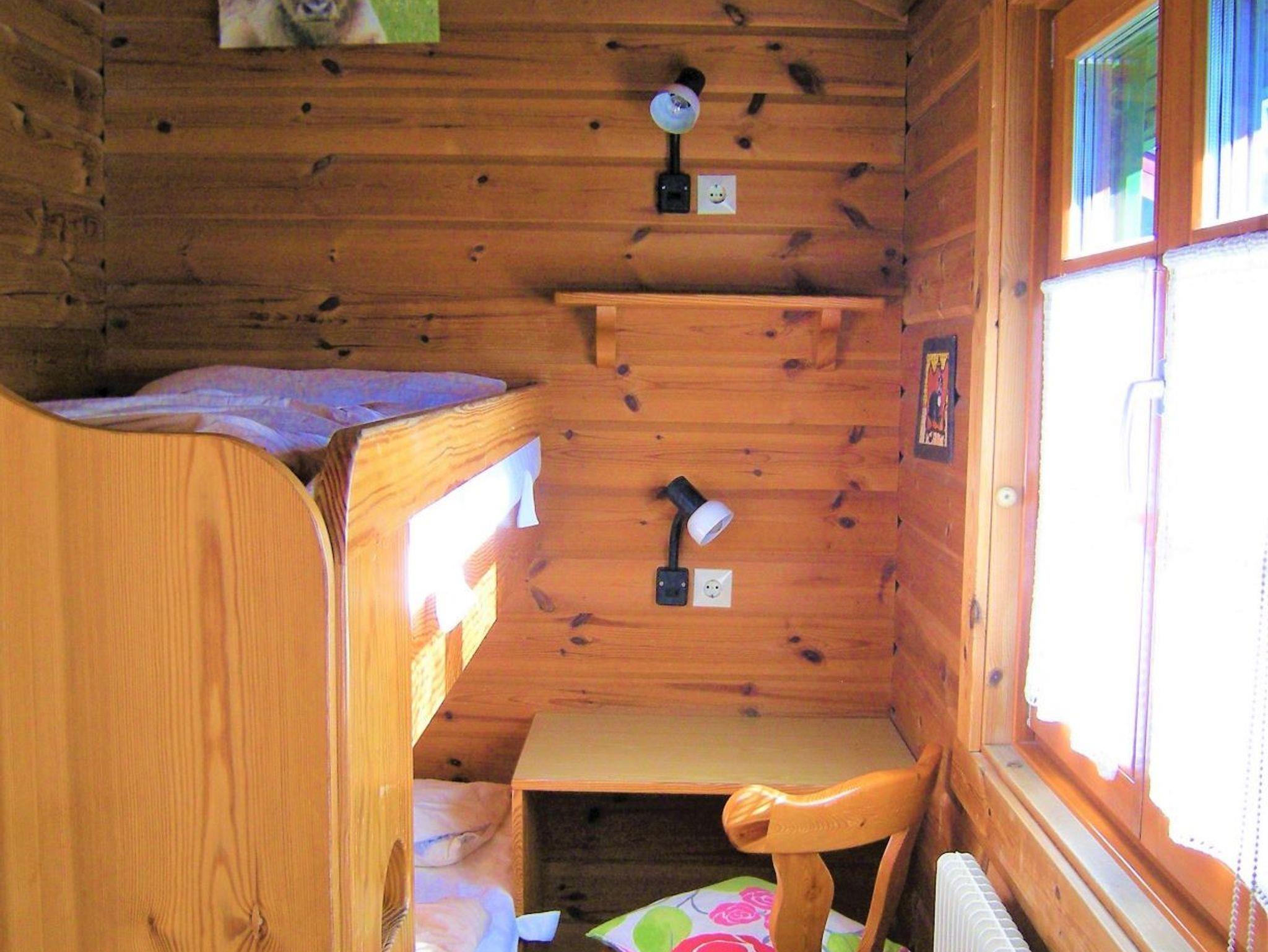 Im Landhausstil eingerichtetes Holzblockhaus für bis zu 4 Personen mit Doppelbett im Schlafzimmer (180 cm x 190 cm) und Etagenbett im Kinderschlafzimmer (je 90 cm x 190 cm), Insektenschutzgittern an allen Fenstern, moderner Brennwerttherme, Nichtraucherhaus.