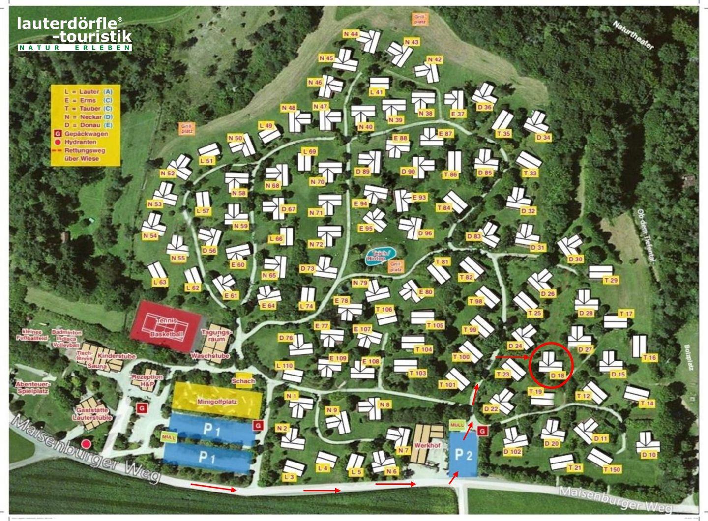 Ihnen stehen zwei Parkplätze pro Buchung am Rande der Anlage zur Verfügung. Das Gepäck kann mit einem Handwagen vom Parkplatz zum Haus transportiert werden.