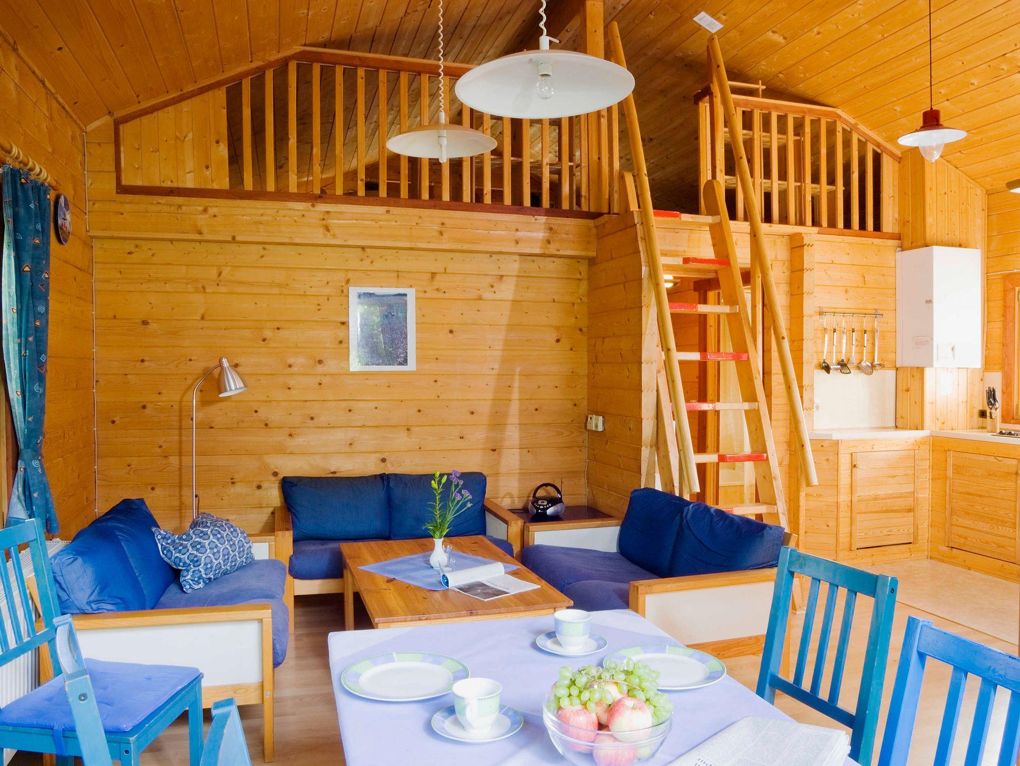 Ihr Ferienhaus liegt zwischen viel Grün und kleinen Teichen in einer parkartigen Landschaft. Die Ferienhäuser gibt es in unterschiedlichen Größen und mit unterschiedlicher Ausstattung: von der einfachen Unterkunft im Chaletstil bis zum großen, rustikalen Blockhaus. Je nach Typ sind sie zwischen 35 qm und 70 qm groß und verfügen über bis zu drei Schlafzimmer für bis zu acht Personen.