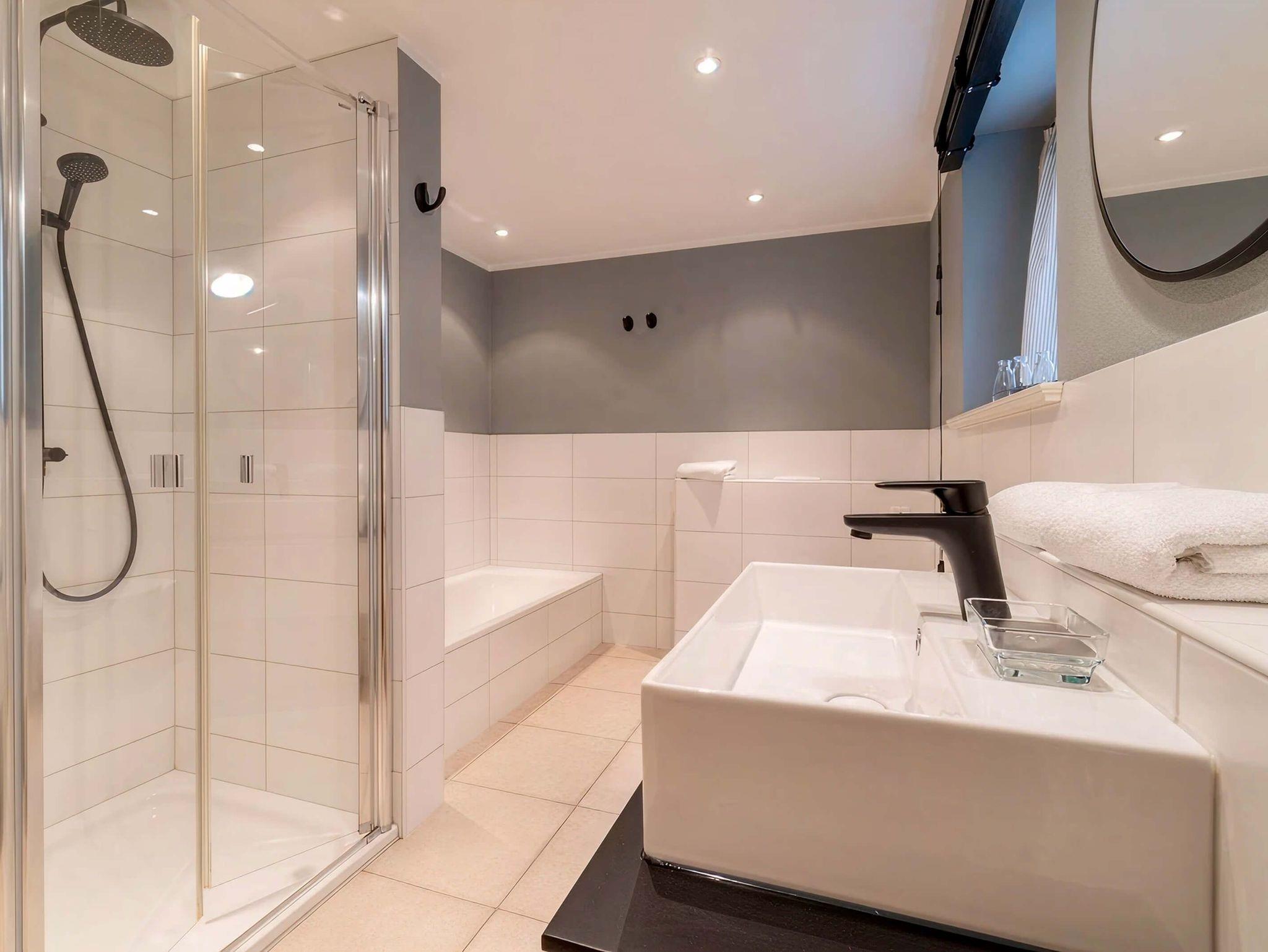 Wellnessbereich mit Sauna, Dusche, Badewanne