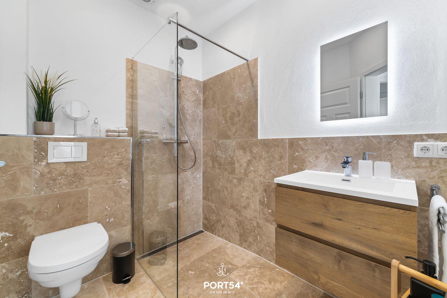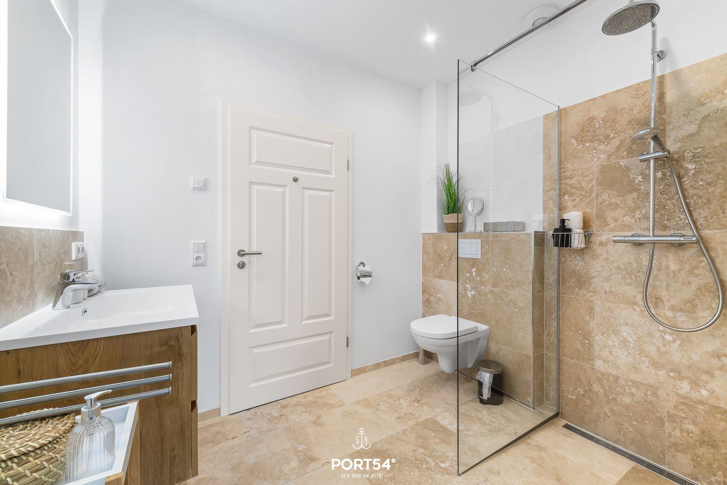 Die beiden vollausgestatteten Badezimmer dieser exklusiven Residenz bieten pure Entspannung und Komfort, mit ebenerdigen Duschen für zusätzliche Bequemlichkeit.