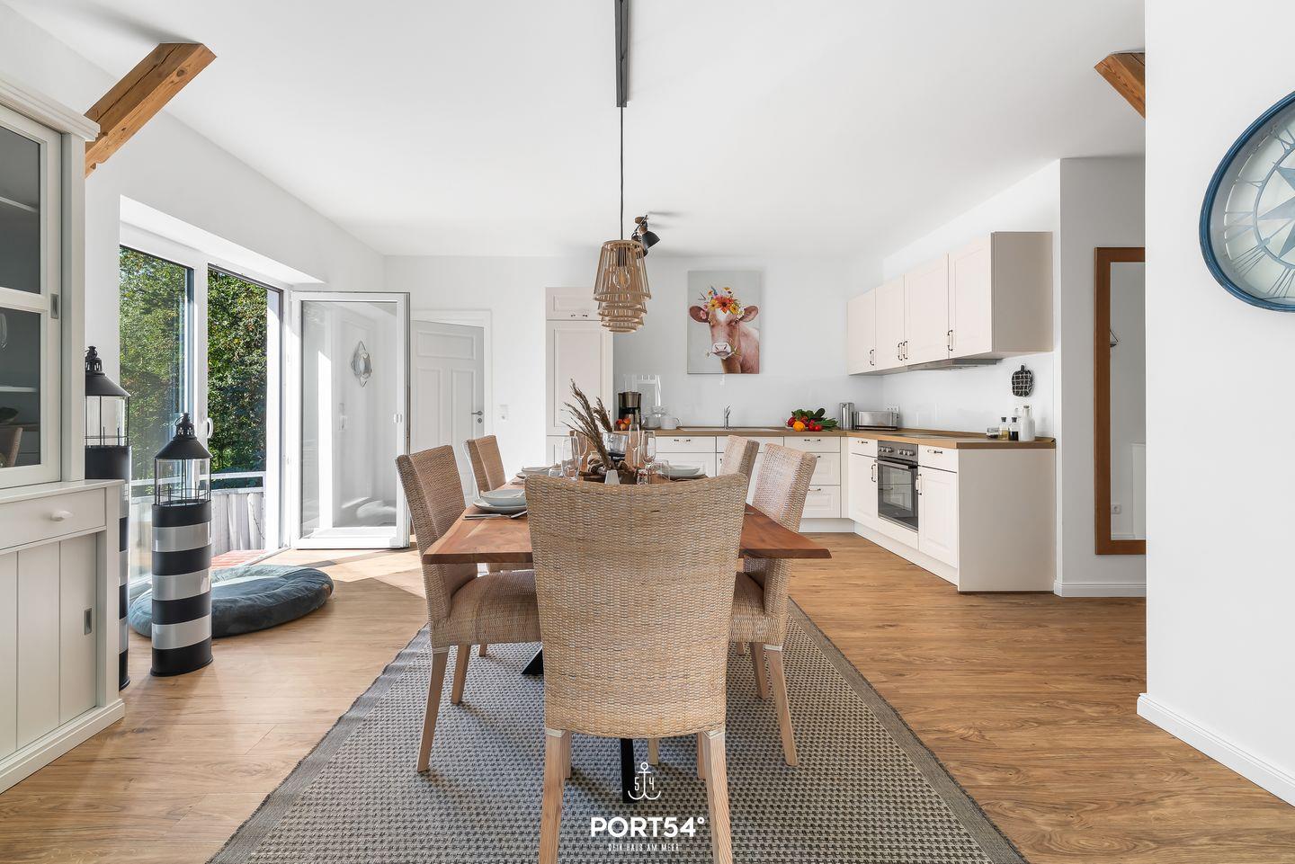 Der offene und hochwertige Wohn- und Essbereich mit voll ausgestatteter Küche und modernen Geräten lädt zum nächsten Kochabend ein.