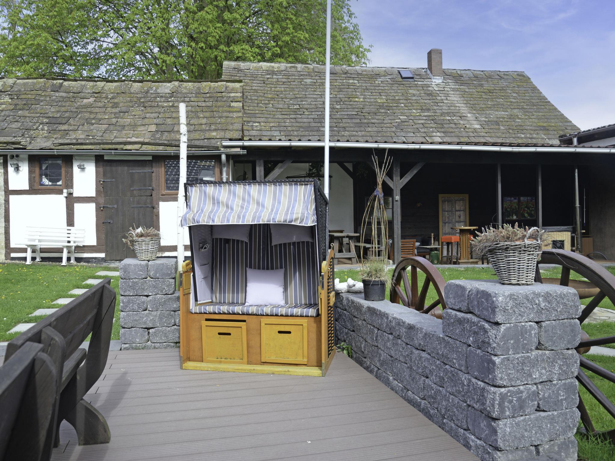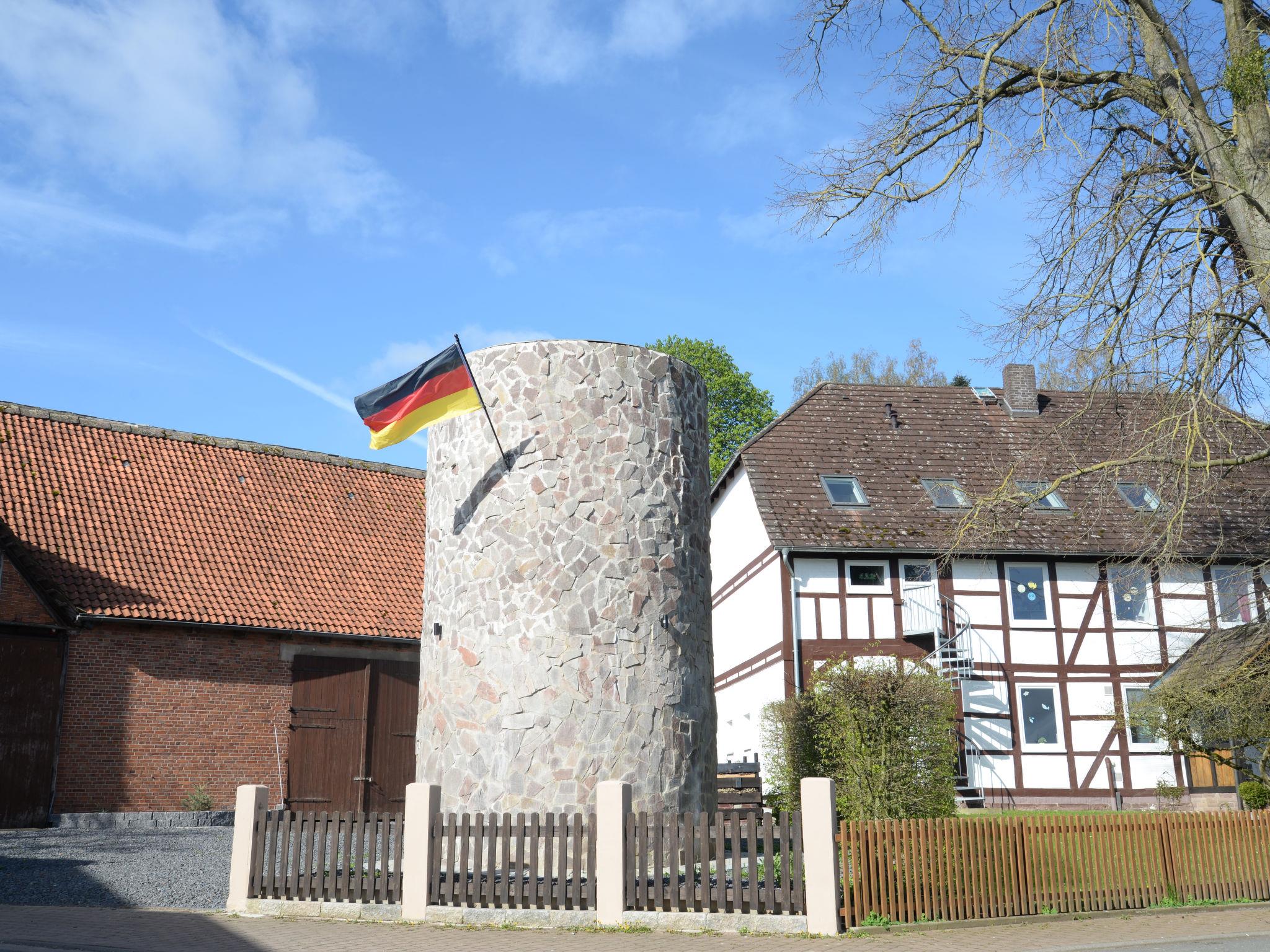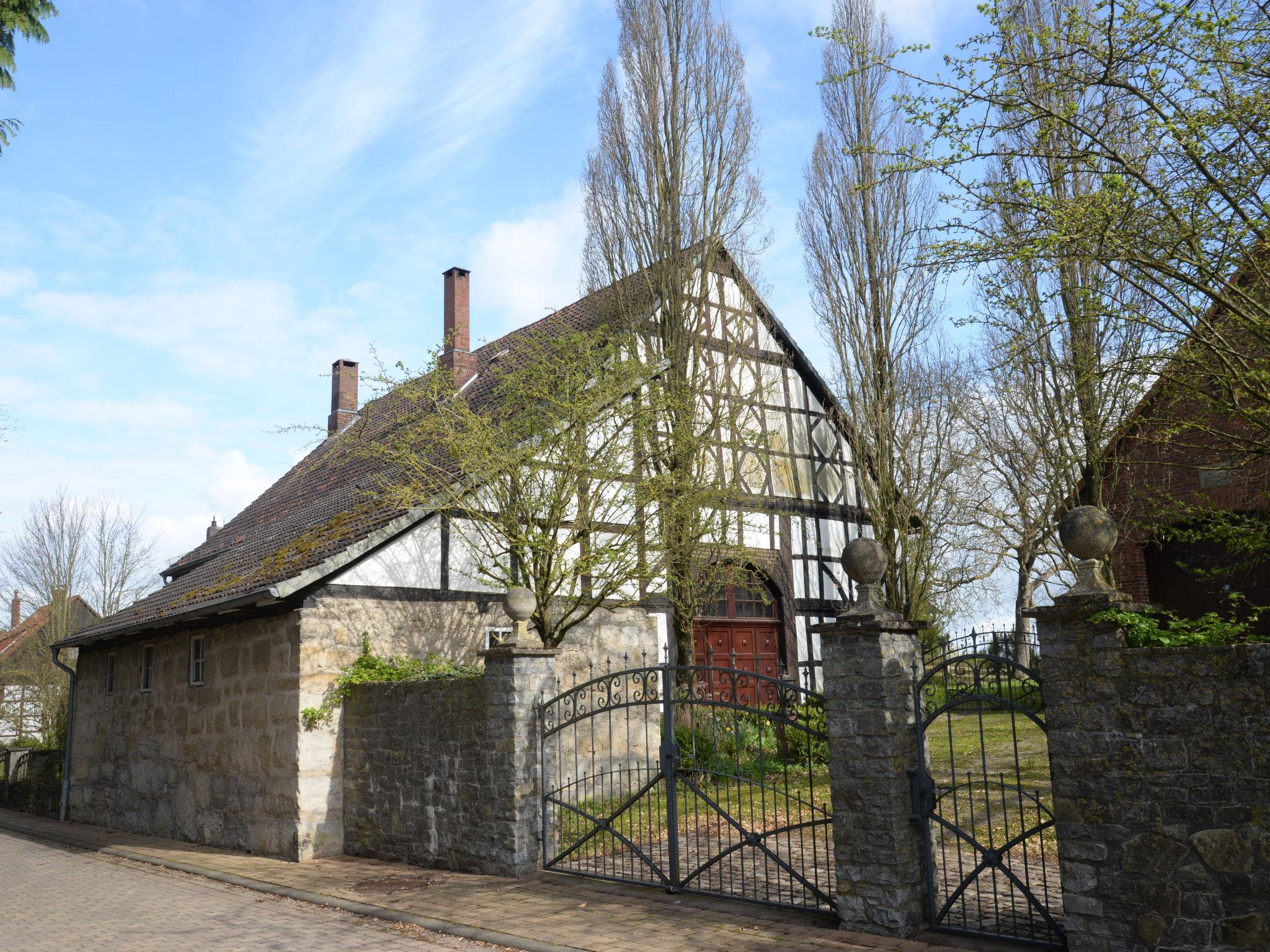 Beautiful, historical working farm, 3 storeys, from the 19th century, renovated in 2019, surrounded by trees and meadows. In the district of Hohe 5.3 km from the centre of Hehlen, 5 km from the centre of Bodenwerder, in a quiet position, 400 m from the edge of the forest. For shared use: large garden 1'500 m2 (fenced) with lawn and trees. Terrace (20 m2), garden furniture, barbecue, children's playground (slide, swing). In the complex: fitness room (extra). Storage room for bicycles, washing machine (for shared use, extra), drying room. Parking (for 10 cars) on the premises, single garage (extra) at the house. Shop 7 km, grocery 5 km, supermarket 7 km, restaurant 5 km, bakery 5 km, bus stop "Hohe" 20 m, outdoor swimming pool 8 km, indoor swimming pool 9 km. Walking paths from the house 200 m. Nearby attractions: Welterbe Corvey 33 km, Porzellanmanufaktur Fürstenberg 40 km. Well-known lakes can easily be reached: Humboldtsee 28 km. Garden seating area (200 m2) and the second terrace (9 m2) are available for shared use (both terraces are not visible to each other). Finnish steam tub (available 01.04.-30.11.) for shared use.