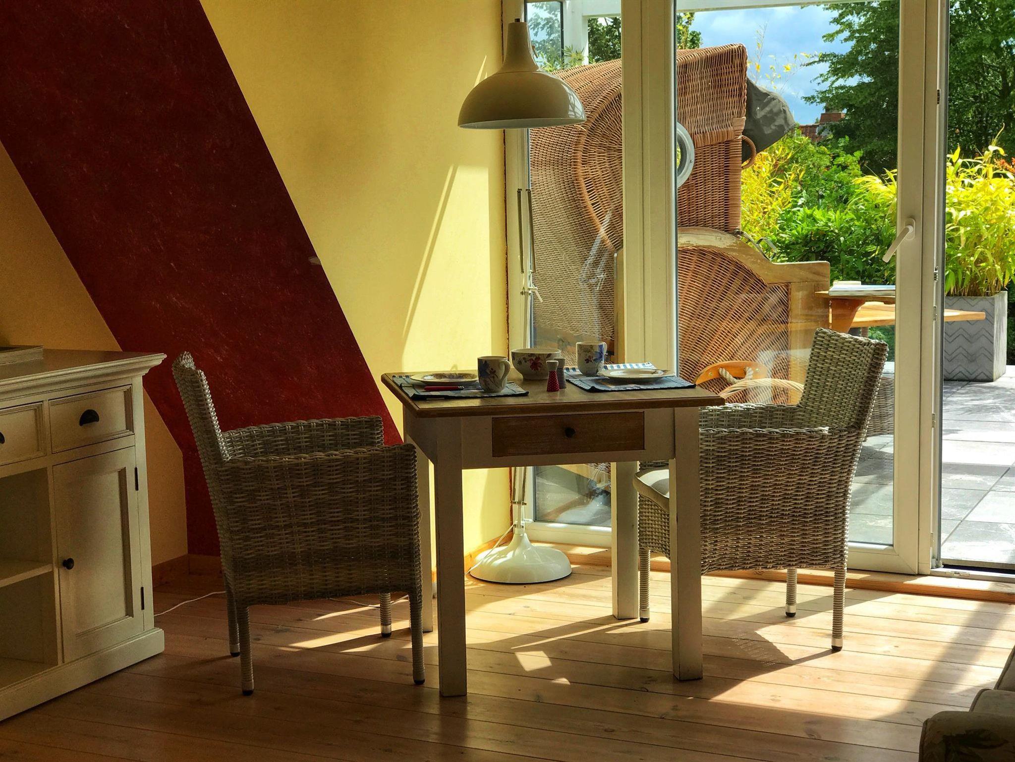 Die Ferienwohnung befindet sich im Dachgeschoss eines Einfamilienhauses und liegt in kurzer Entfernung zum Strand und Hafen. Das Appartement besticht durch den wunderschönen, 40 qm großen, Dach- und Wintergarten mit Glasschiebeelementen.