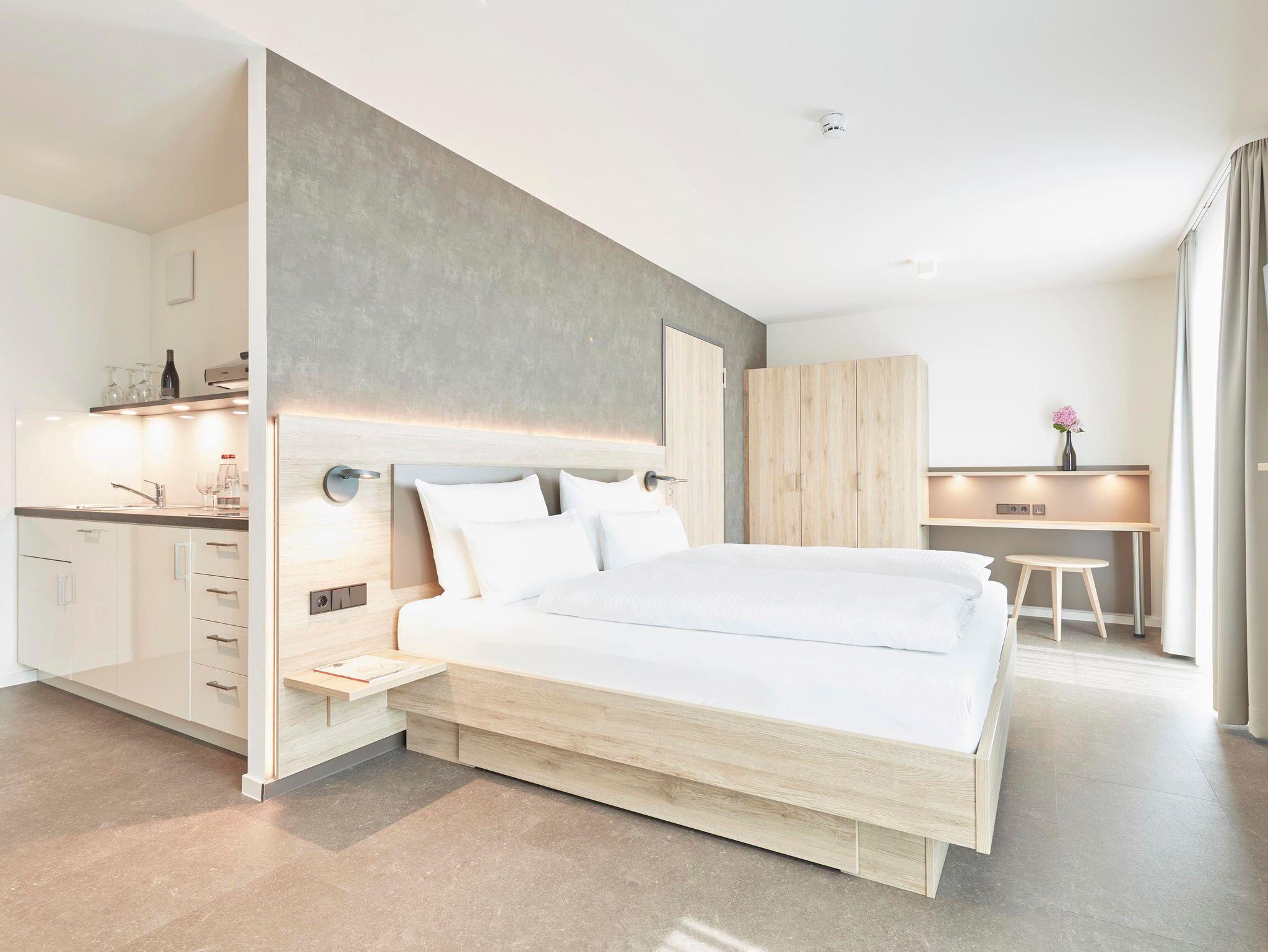 Die großzügigen, modern eingerichteten Gästezimmer sind mit einem geräumigen Bad ausgestattet. Es gibt insgesamt 16 Doppelzimmer (Einzelbelegung möglich), von denen die Hälfte als Dreibettzimmer buchbar sind.