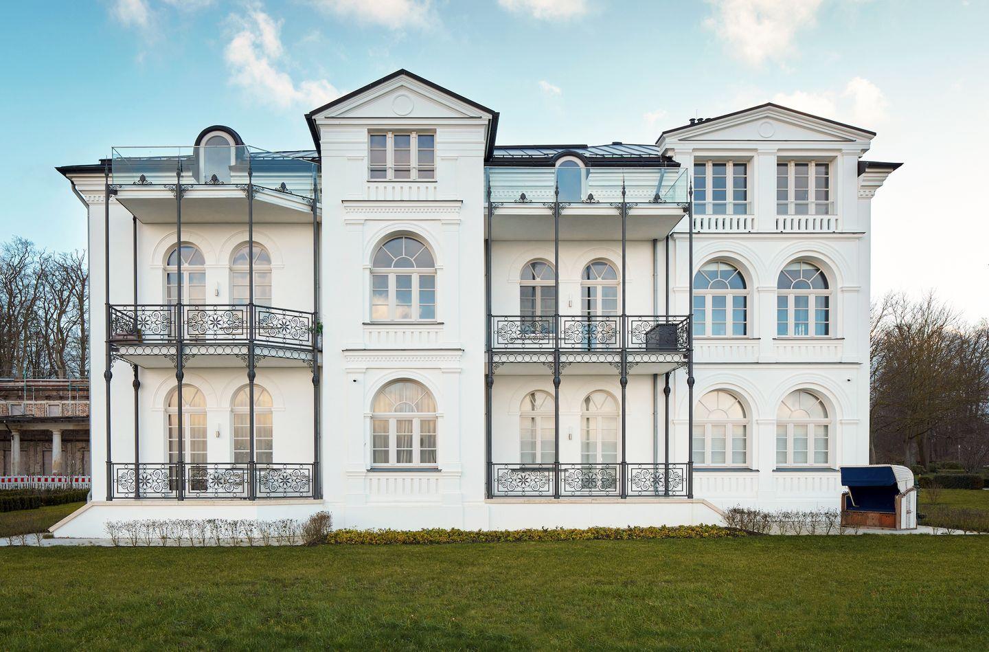 Die Ferienwohnung 05 in der Villa Greif in Heiligendamm ist eine exklusive 110 m² große 3-Zimmer-Wohnung für bis zu 4 Personen mit einem Balkon mit Seeblick. Die Villa gehört zu den Logierhäusern der Perlenkette.