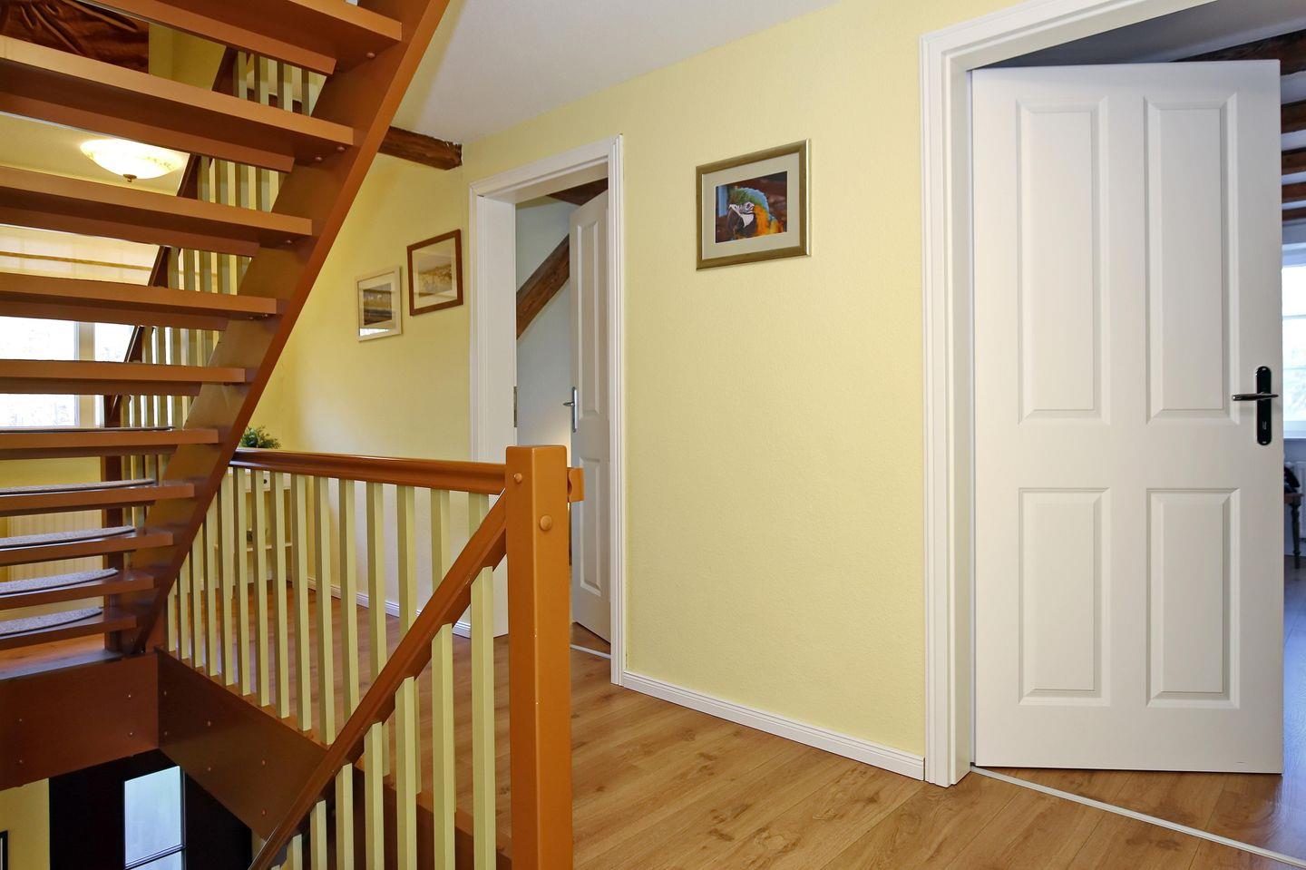 Die 2. Etage des Ferienhauses ist mit einem Flur und zwei Schlafzimmern mit je zwei Einzelbetten (2 x 90 cm x 200 cm) und einer Kommode ausgestattet.