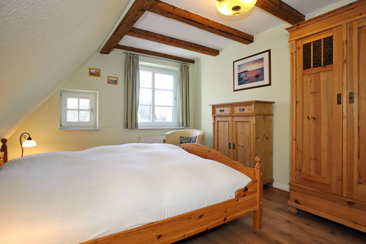 In der 1. Etage befinden sich zwei Schlafzimmer mit jeweils einem komfortablen Doppelbett (2 x 90 cm x 200 cm). Für dein Urlaubsgepäck kannst du die geräumigen Kleiderschränke nutzen.