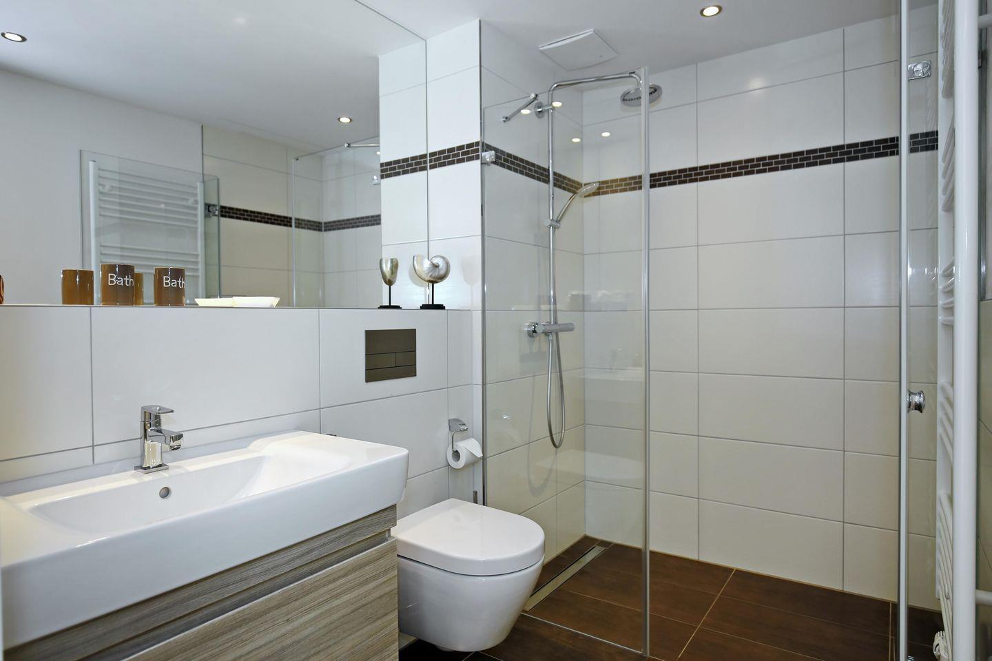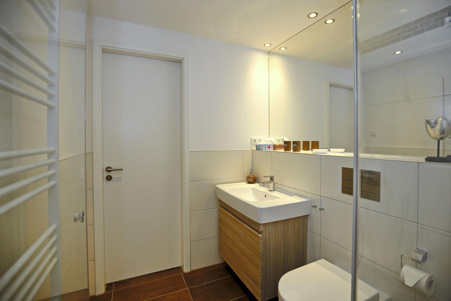 Das Duschbad mit ebenerdiger Dusche ist komfortabel eingerichtet. Ein Föhn komplettiert die Ausstattung des Bades. In der Wohnung ist ein Design-Bodenbelag verlegt. Die Fußbodenheizung in allen Wohnräumen sorgt für wohlige Wärme. Es handelt sich um eine Nichtraucher-Wohnung. Haustiere sind in dieser Wohnung nicht gestattet.