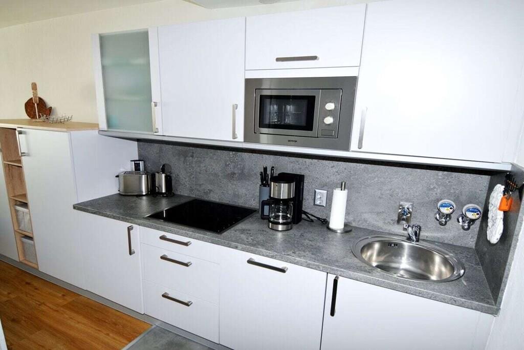 In unserem hellen und modernen Ferienappartement (35 m²) für 2 Personen werden Sie sich wohlfühlen. Wir haben das Appartement im Frühjahr 2019 vollständig renoviert und möbliert. Beginnen Sie den Tag im schicken Duschbad mit Regenwalddusche. Die großzügige Küche ist gut eingerichtet und verfügt u.a. über einen Geschirrspüler. Der Wohn-/Schlafbereich verfügt über ein Sofa mit Chaiselongue, LED TV (104 cm), Esstisch und Ehebett (1,60m - durchgehende Matratze!). W-LAN kostenlos. Vom Westbalkon über die gesamte Wohnungsbreite haben Sie einen schönen Blick zum Binnensee und zur Ostsee. Die Ferienwohnung befindet sich im 3. Obergeschoss eines Appartmenthauses mit Fahrstuhl und ca. 50 Whg. am Steinwarder.