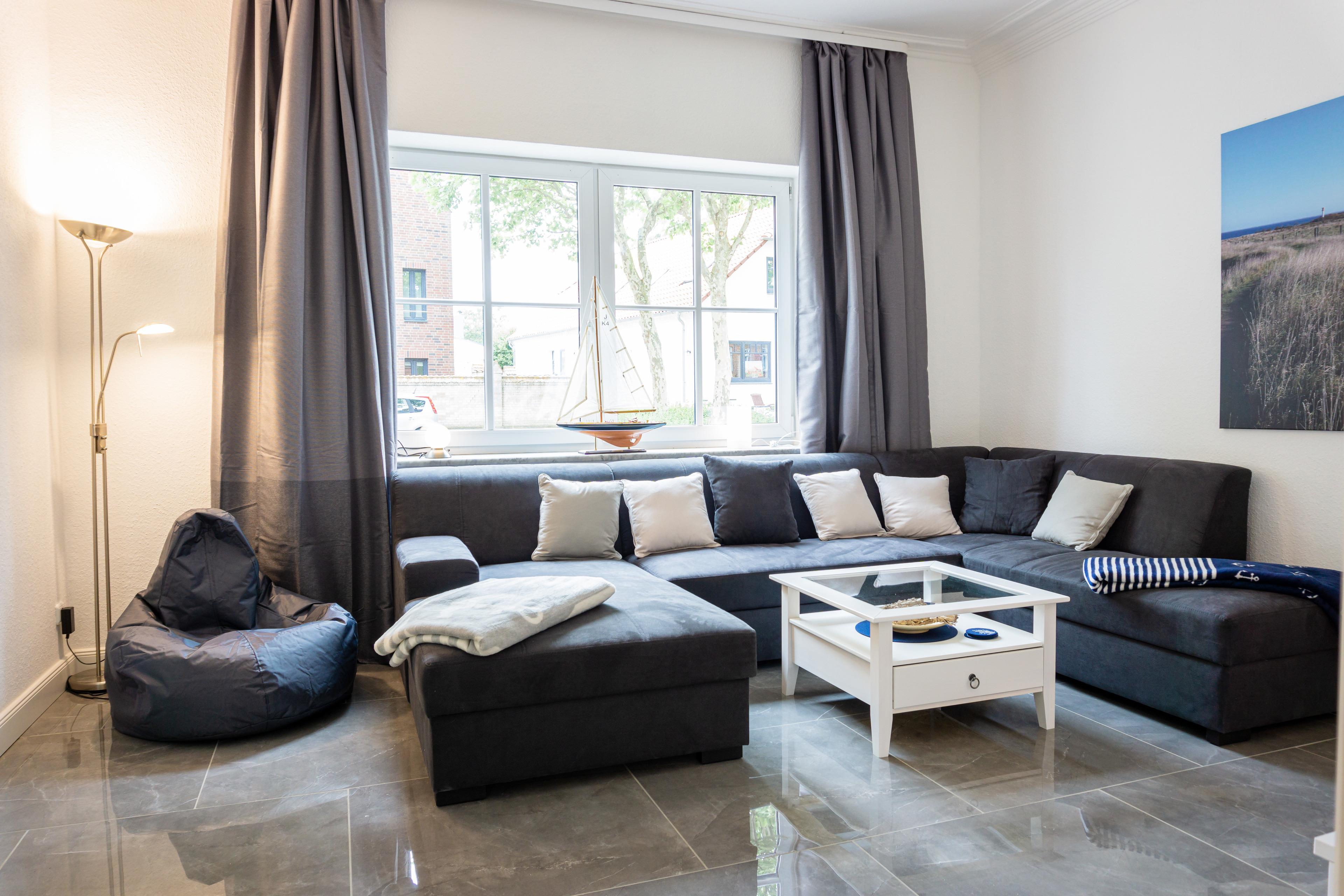 Ihre Ferienwohnung "Mien Tied MITTENMANG" ist eine ca. 100 m² große Ferienwohnung im Erdgeschoss des Haupthauses. Hier können Sie Ihr Auto stehen lassen. Zu der Ferienwohnung gehört auch ein PKW - Stellplatz. Den braucht man in der Innenstadt! Denn die Lage im Thulboden sorgt für kurze Wege. Nur 150 Schritte und Sie können im Kommunalhafen ein zünftiges Essen in der Fischhalle genießen. Machen Sie sich bei uns gemütlich. In 1.2 km Entfernung befindet sich der nächste Strand. Das besondere an dem Appartement ist, dass jedes Schlafzimmer über ein eigenes Bad verfügt.