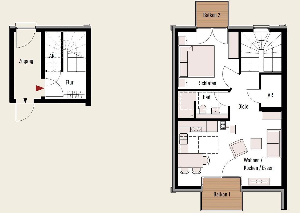 Die Wohnung empfängt Sie im offenen Wohnbereich mit der voll ausgestatteten Küche. Durch den Balkon zur Ostseite haben Sie einen tollen Blick über die Strandpromenade, der Balkon mit Südwestausrichtung lädt zum Sonnenbaden, Ausruhen und Verweilen ein, und die wunderschönen Sonnenuntergänge lassen sich hier ganz besonders intensiv genießen. In der Winterzeit wärmt Sie das behagliche Kaminfeuer (der praktische Gaskamin ist stets sauber, sie müssen auch kein Holz kaufen).