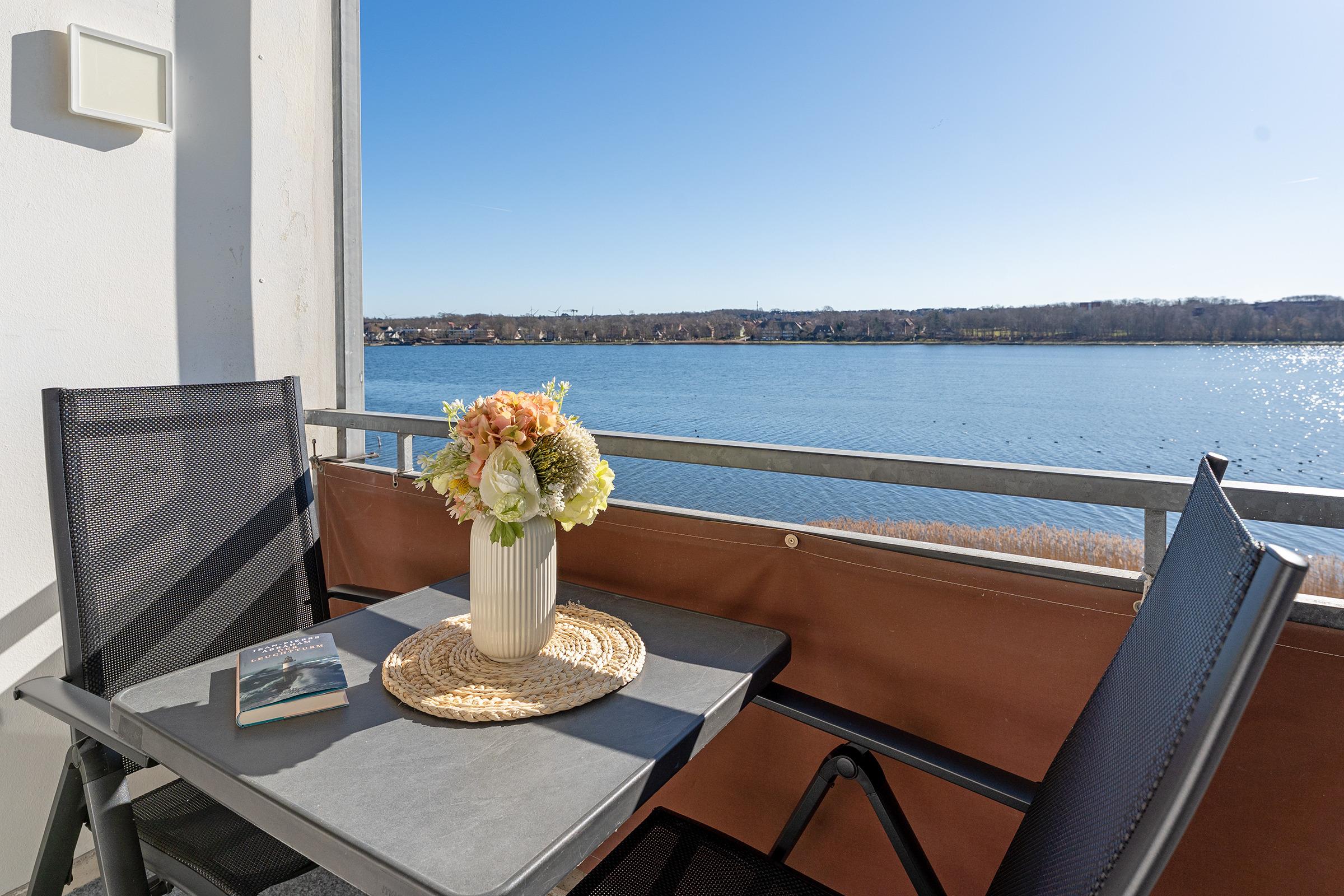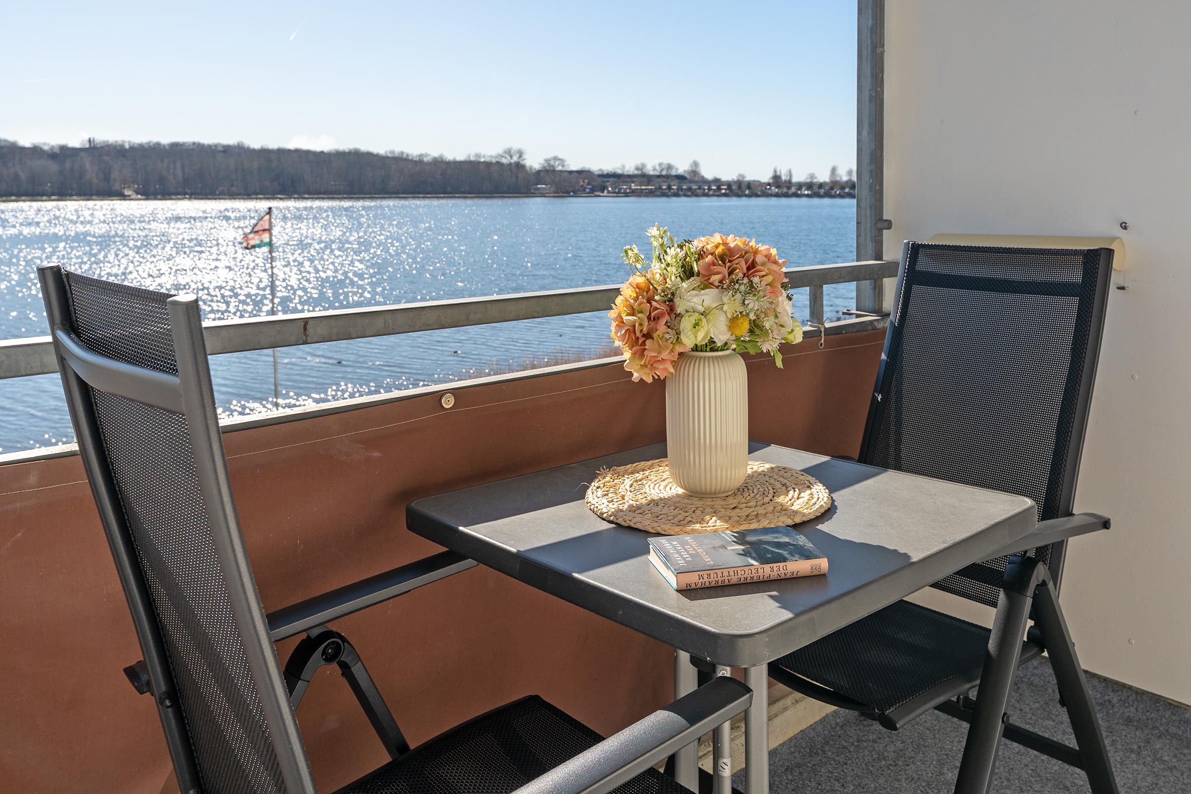 Diese gemütliche Ferienwohnung im 2. Stock bietet einen komfortablen Wohnbereich mit Sofa, TV und Zugang zum Balkon mit Südausrichtung. Hier genießen Sie entspannte Stunden mit Blick auf den Binnensee.