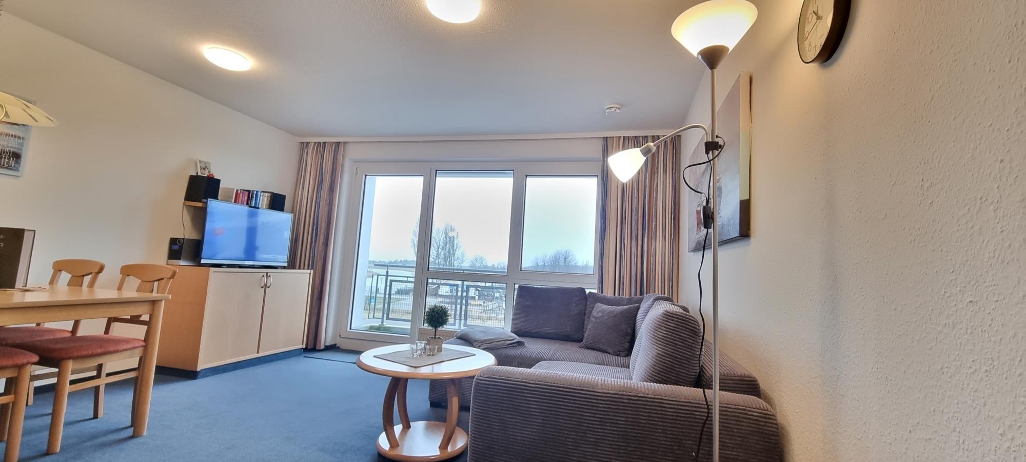 Das Appartement 57 in der Ostseeresidenz Heiligenhafen bietet Ihnen alles, was Sie für einen erholsamen Urlaub brauchen. Mit einem Schlafzimmer, das einen wunderschönen Blick auf den Binnensee bietet, und einer praktischen Couch mit Schlaffunktion im Wohnzimmer, ist diese Ferienwohnung ideal für Paare oder kleine Familien.