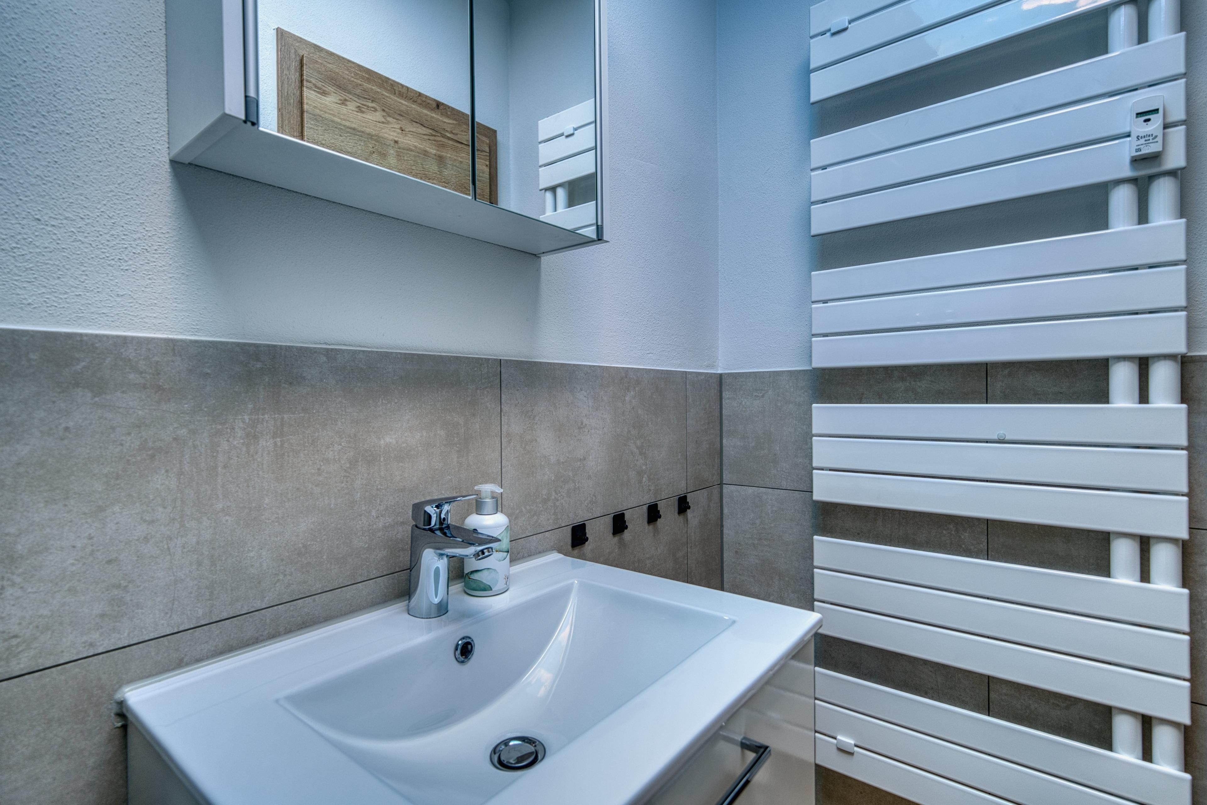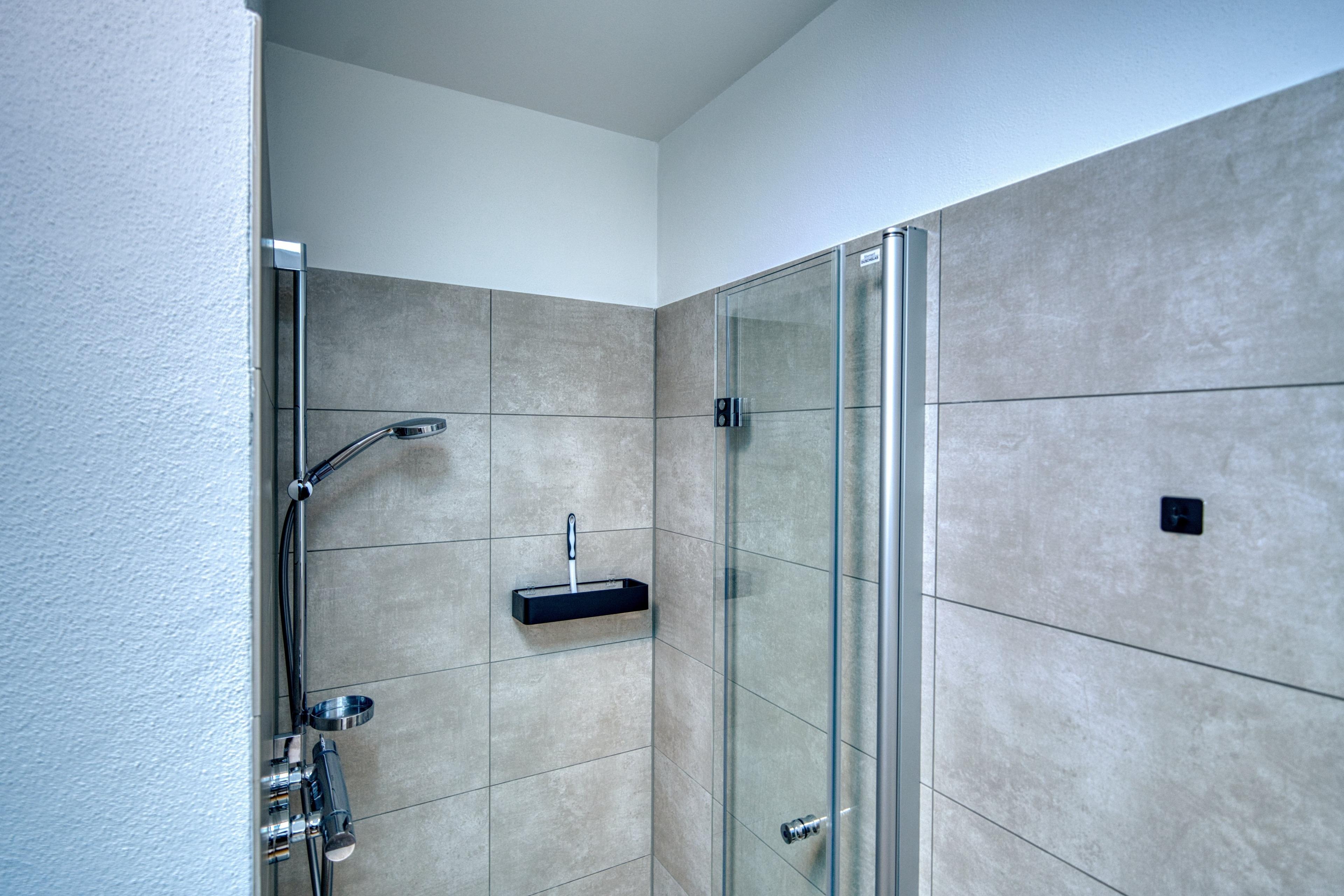 Badezimmer: Dusche, WC, Handtuchtrockner